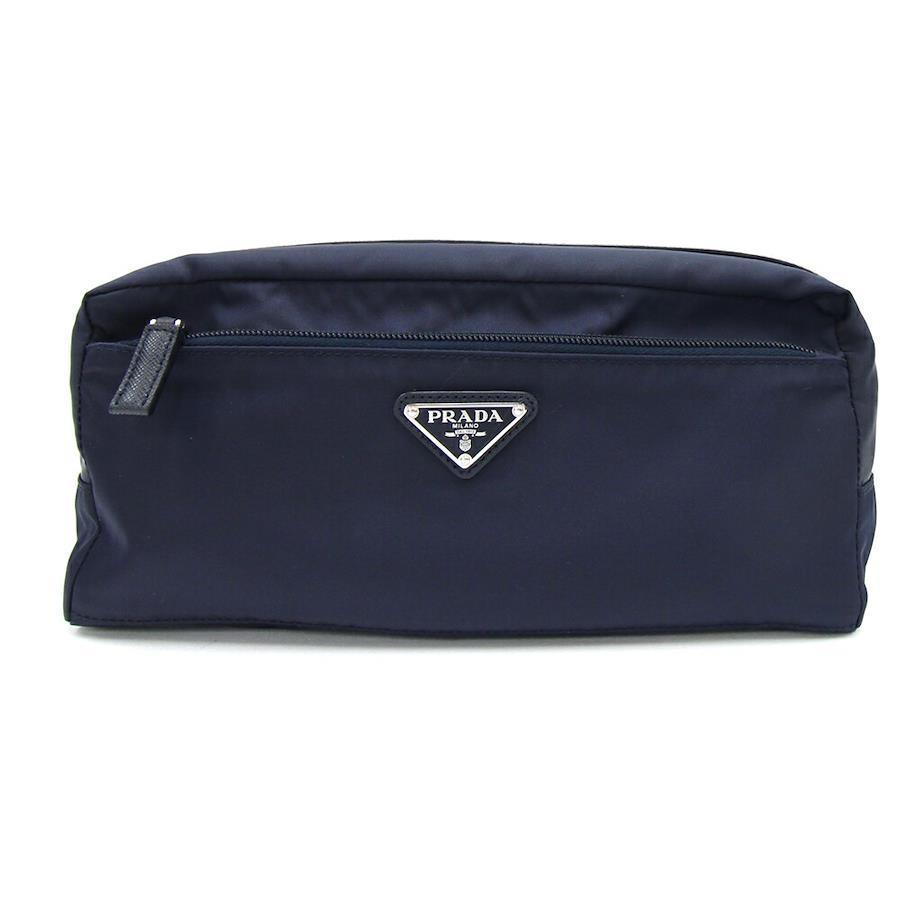 プラダポーチ2NA030ネイビーナイロンレザー中古クラッチバッグトラベルポーチロゴレディースメンズPRADA