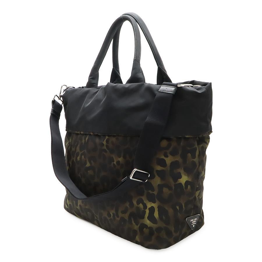 PRADA Prada 2-Way Tote Bag, Reversible Shoulder Bag, Leopard Print Camouflage Nylon, Green Multicolor, Black, BR4521