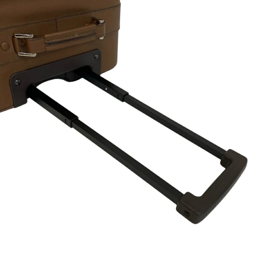 裏側ファスナープルレザーに劣化、曲がり有り。表面レザーに反り有り。キャリーケースのタイヤ部分に汚れ、キズ、有り。底部分に傷、汚れ有り。