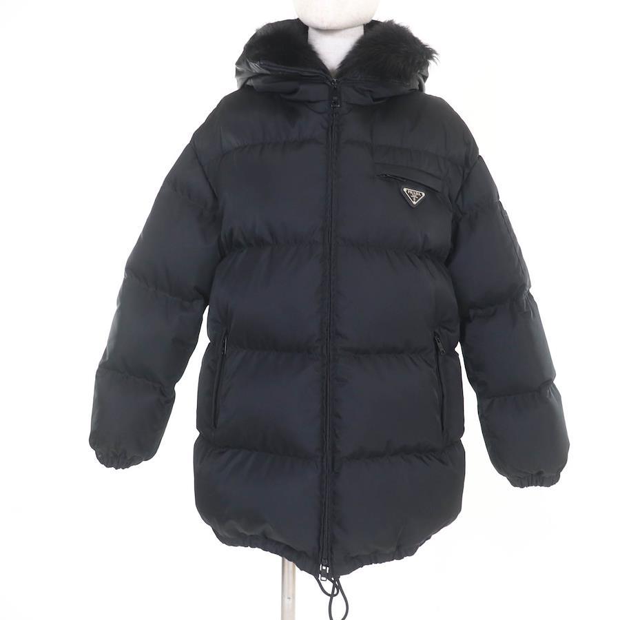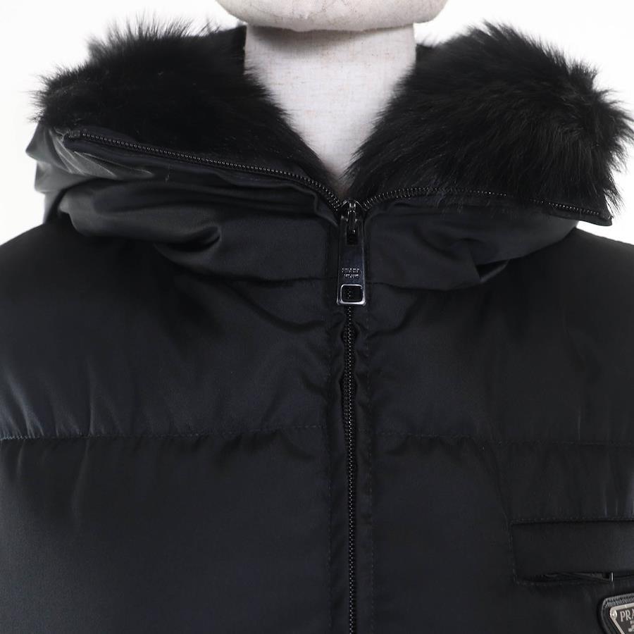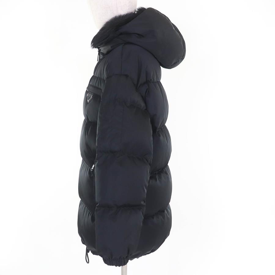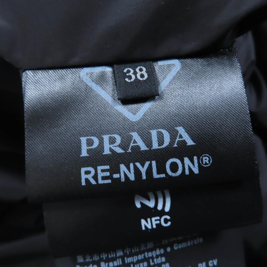 PRADA Re-Nylon Triangle Logo Gabardine Puffer Down Jacket in Black, Recycled Polyamide, 29X808