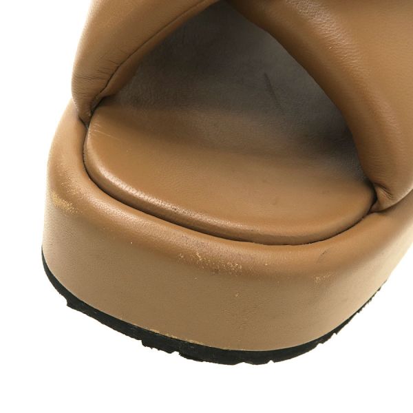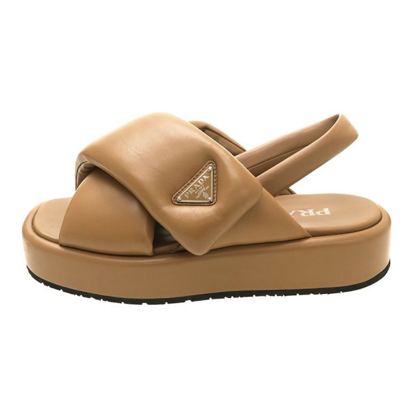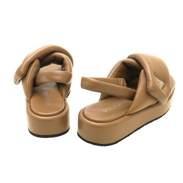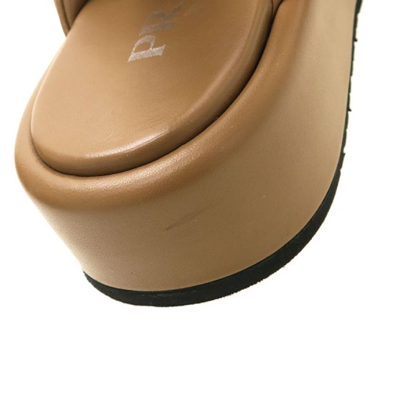 ■採寸#381/2 日本サイズ約25cm~25.5cm 甲幅10cm ヒール高4cm■コメントプラダから厚底のサンダルが入荷しました。右足つま先やカカトにダメージが見られ、左足のつま先にも若干ダメージが見られます。中敷に少し指跡の様なダメージも見受けられますが存在感のあるお品物です◎柔らかな素材で履き易そうでおススメです。お問い合わせください。