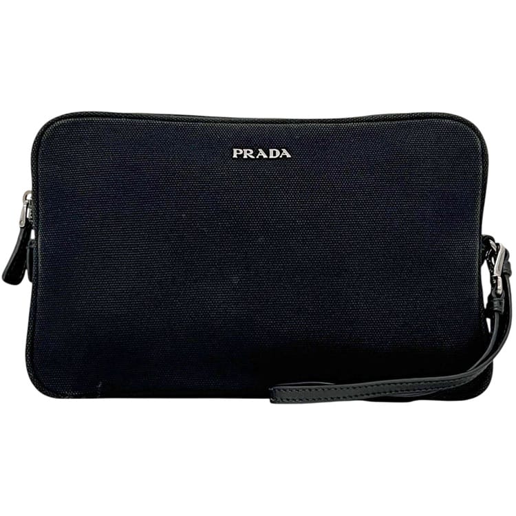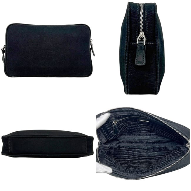 ☆---- 商品について ----☆プラダ セカンドバッグ アクセサリーポーチ ブラック NERO 黒 美品 ポーチ ミニハンドバッグ キャンバス レザー 中古 PRADA