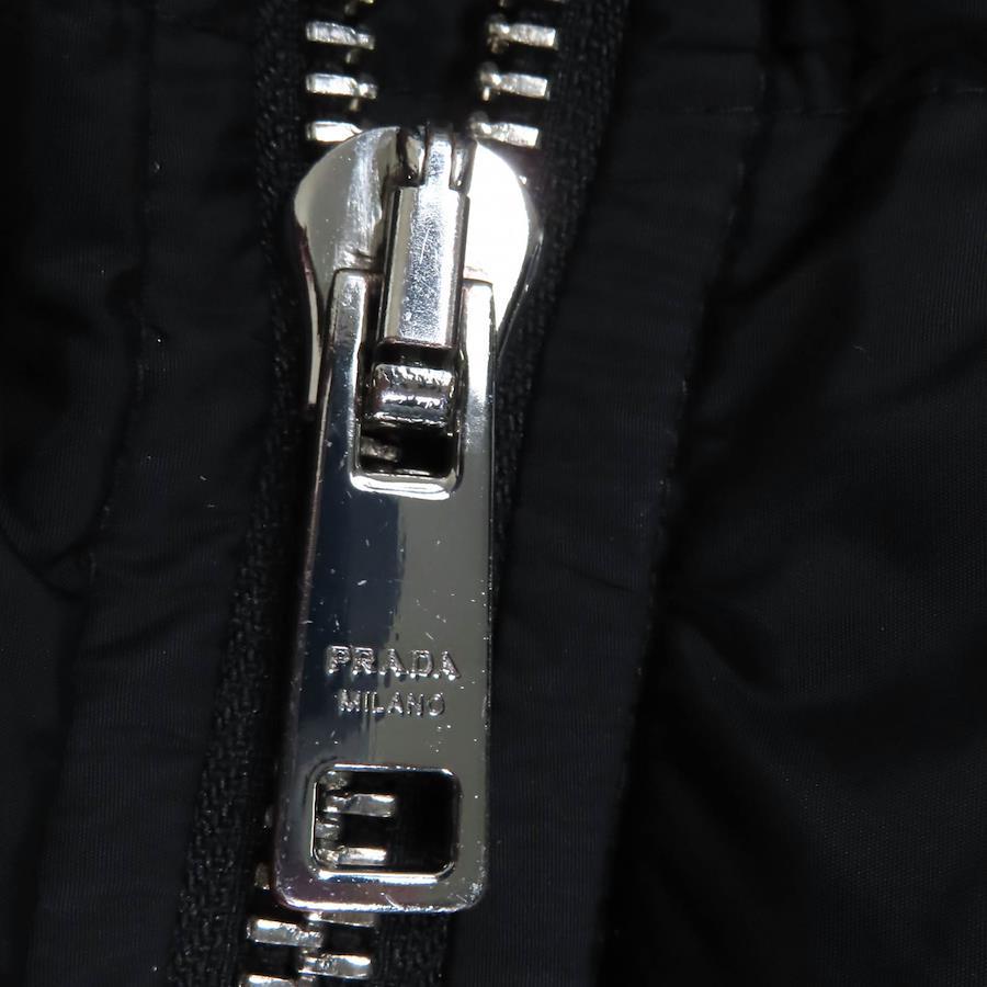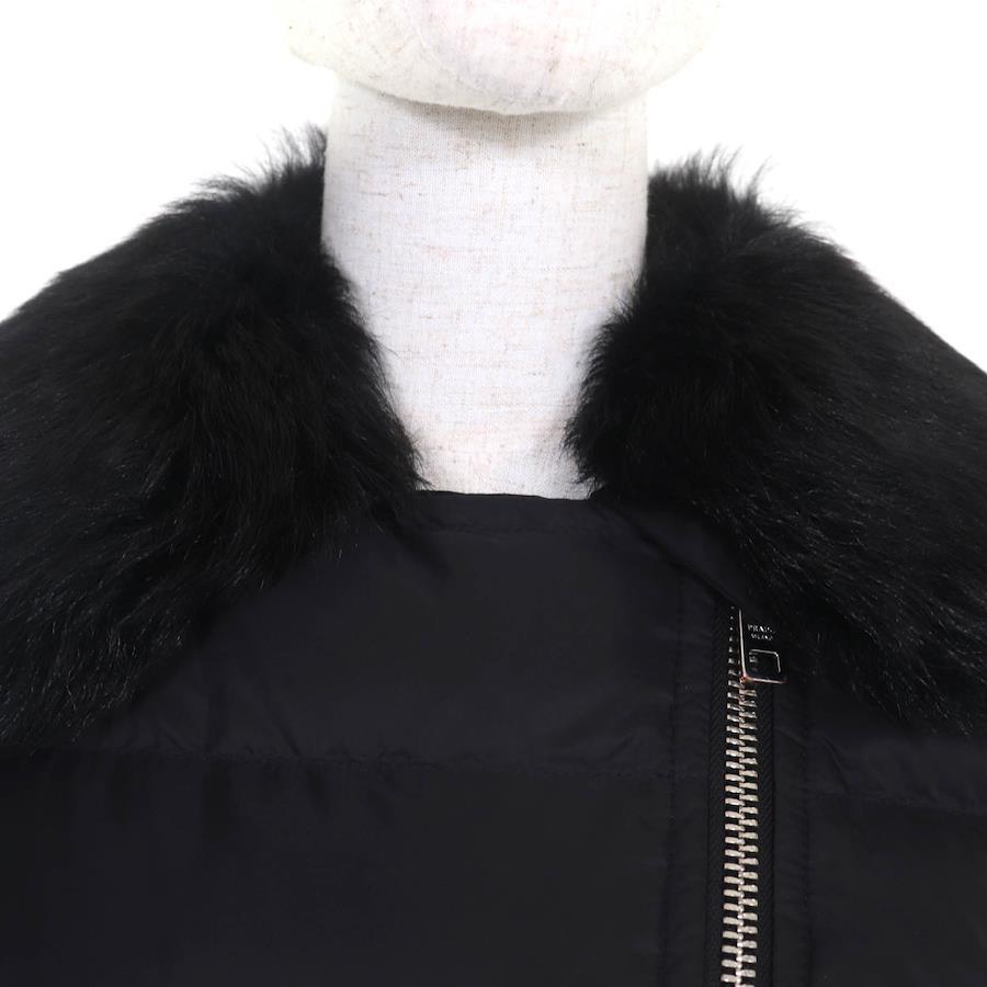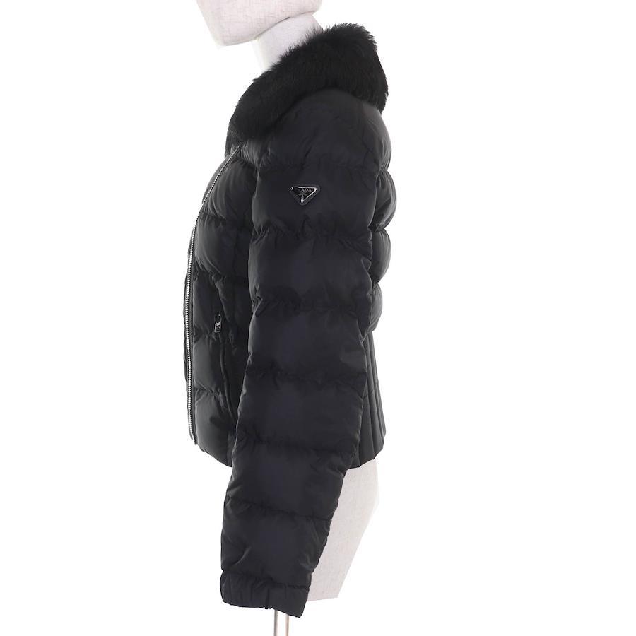 PRADA Short Down Jacket with Triangle Logo Plate and Lamb Fur Collar, Black Polyamide, 29Y510