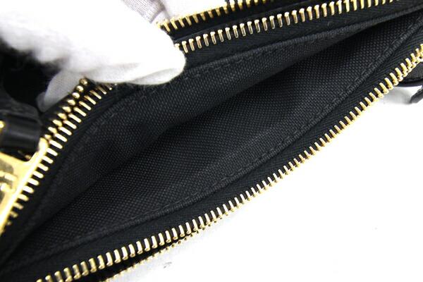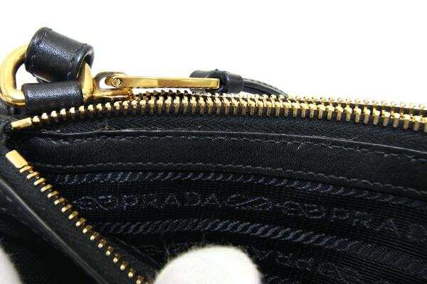 プラダショルダーバッグ1BH046ブラックジャガードキャンバスレザー中古斜め掛けポシェットロゴリボンレディースPRADA