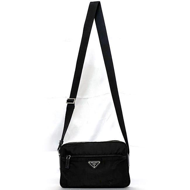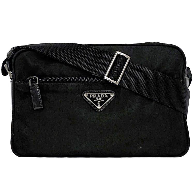 Prada shoulder bag black Tessuto ec-20626 good condition camera bag nylon leather used PRADA triangle zipper light