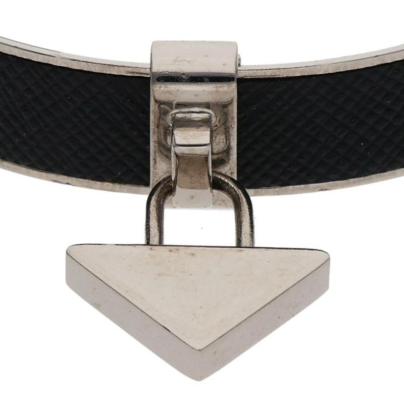 PRADA Size: - 0 0 Triangle Logo Metal/Leather Bracelet