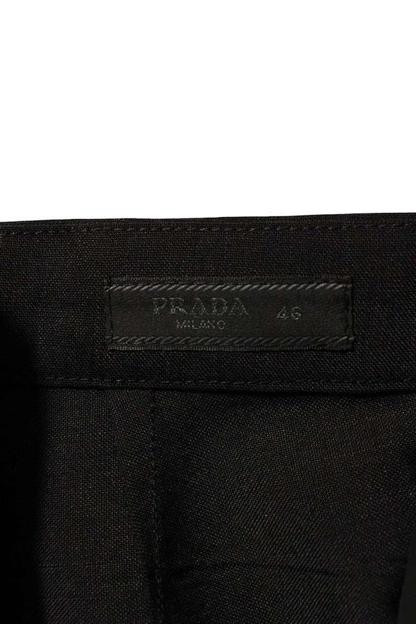 ランク:N (新品)状態備考:-ブランド:プラダサイズ:46色:ブラック実寸:ウエスト幅43cm 股上32cm ワタリ幅31.5cm 股下79cm 裾幅19cm重さ:-素材:(表地) モヘア60%、ウール40% (ポケット裏地) コットン (別布1) シルク (別布2) 牛革付属品:タグその他特徴:-管理番号:10829-251102-0026