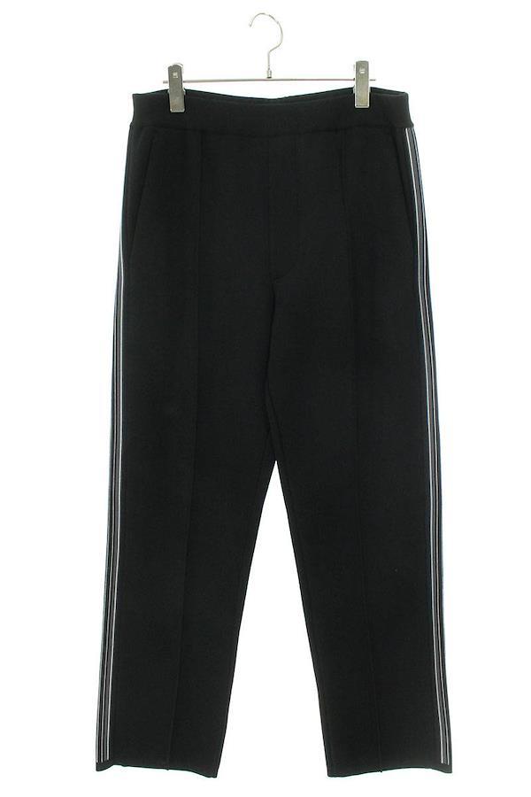 ランク:N (新品)状態備考:-ブランド:プラダサイズ:48色:ブラック実寸:ウエスト幅39cm 股上32cm ワタリ幅33cm 股下74cm 裾幅21cm重さ:-素材:(表地) ウール90%、シルク10% (皮革) 牛革付属品:タグありその他特徴:-管理番号:10829-231125-0245