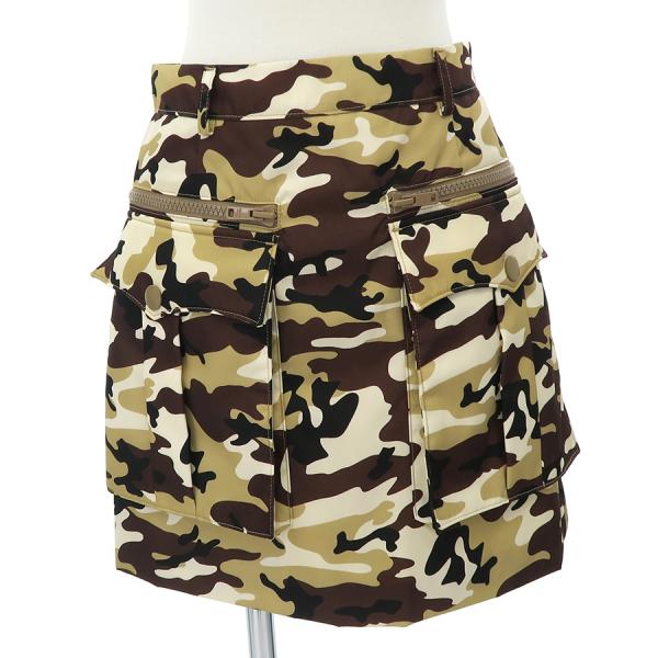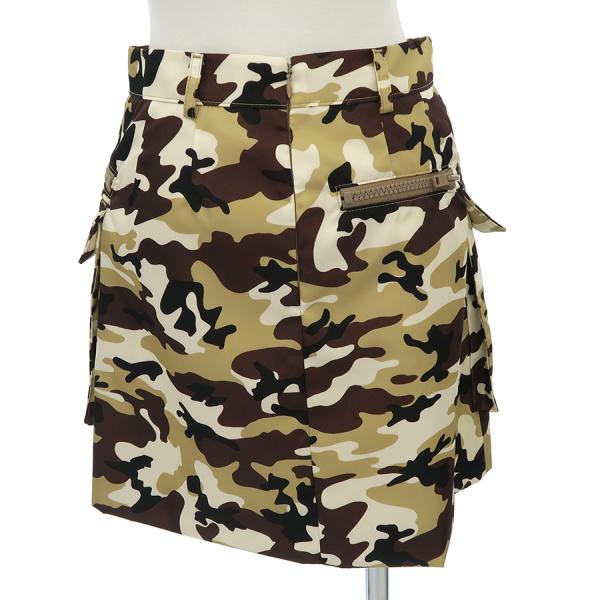 ■採寸#38 W70cm H86cm 総丈44cm■素材外生地 ナイロン100%裏生地 ビスコースレーヨン子牛革ディティール■コメントプラダからカモフラージュ柄のミニスカートが入荷しました。大きめのジッパー使いにまち付きのポケットなど遊び心いっぱいです。右ポケットのふたに跳ねがありますが、着用感は少なめです。レギンスを合わせたり、ロングブーツとコーディネートしてもかわいいです。どうぞお気軽にお問い合わせくださいませ。