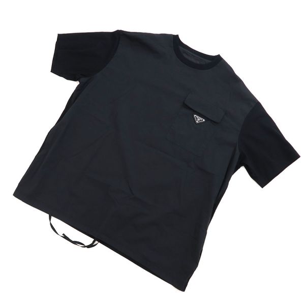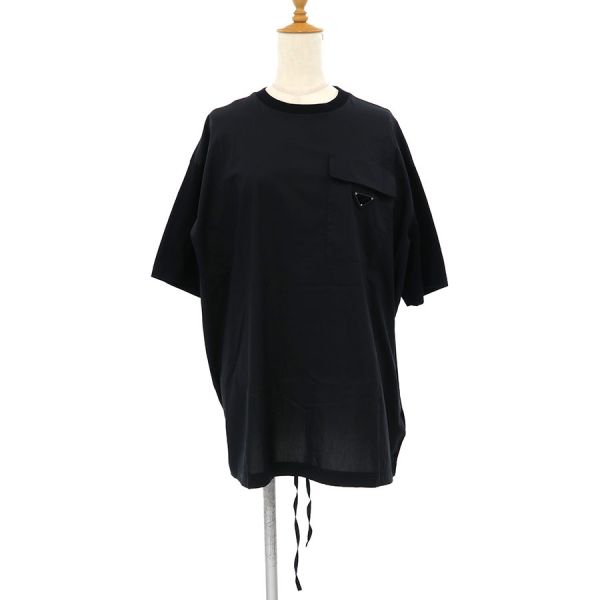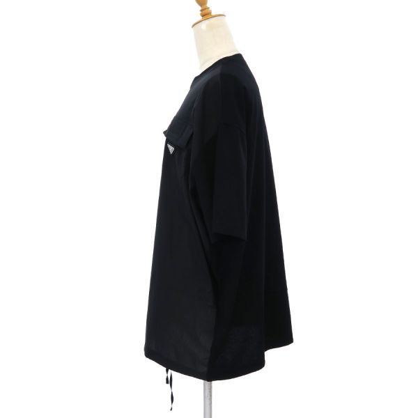■採寸#XS 肩幅54cm 袖丈23cm B128cm 着丈74cm■素材フロント:綿60% ポリアミド40%ポケット内側:綿60% ポリアミド40%後身頃とスリーブ:綿100%子牛革とディテール■コメントプラダより黒のTシャツが入荷いたしました。胸元にはマジックテープ付きのポケットがあり、裾には紐が通っているのでしぼる事が可能です。うなじの内側に汚れ、胸元のプレートに細かな傷、香水のにおいの付着があり、全体的にやや着用感がありますが、通常使用は可能かと思われます。お気軽にお問い合わせくださいませ。