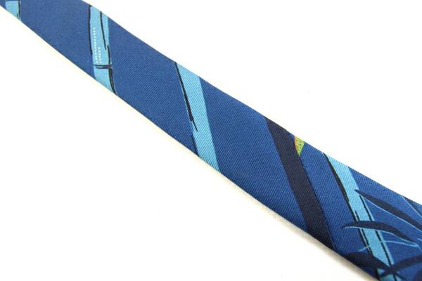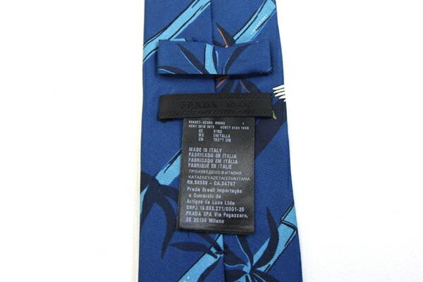 プラダネクタイUCR77ブルーシルク100%中古スーツビジネスファッションツル鶴メンズ男性PRADA