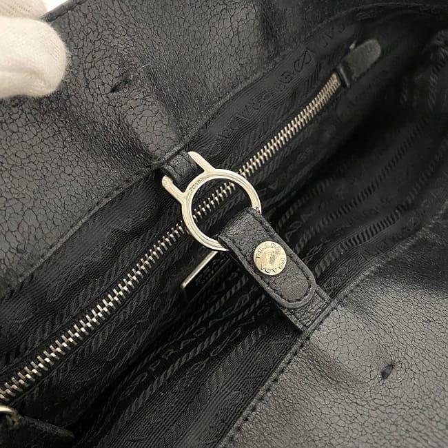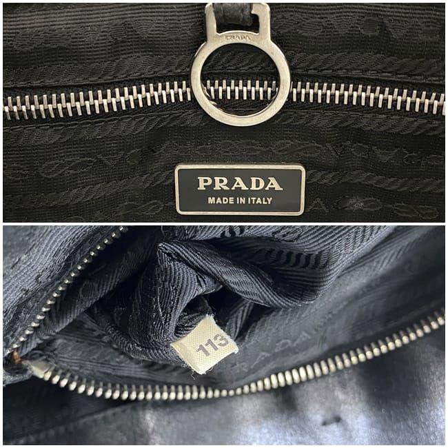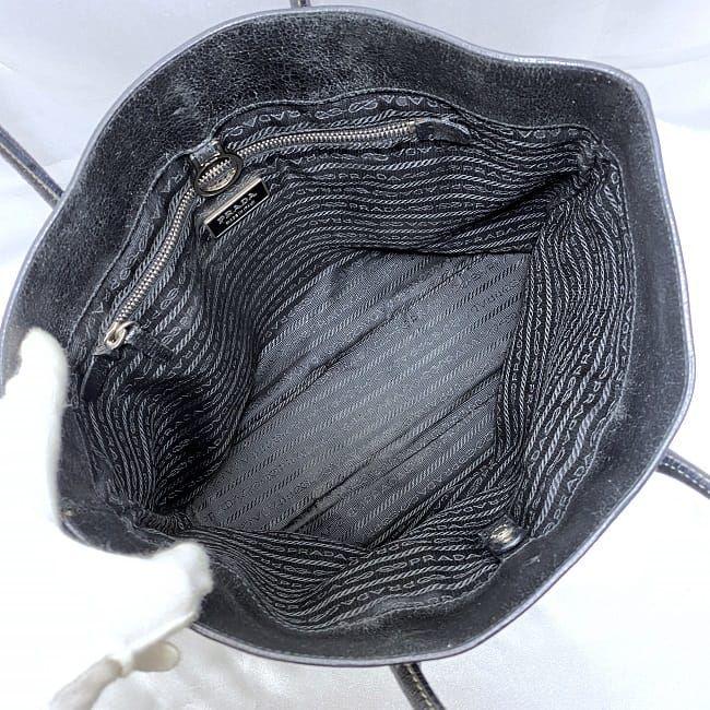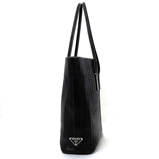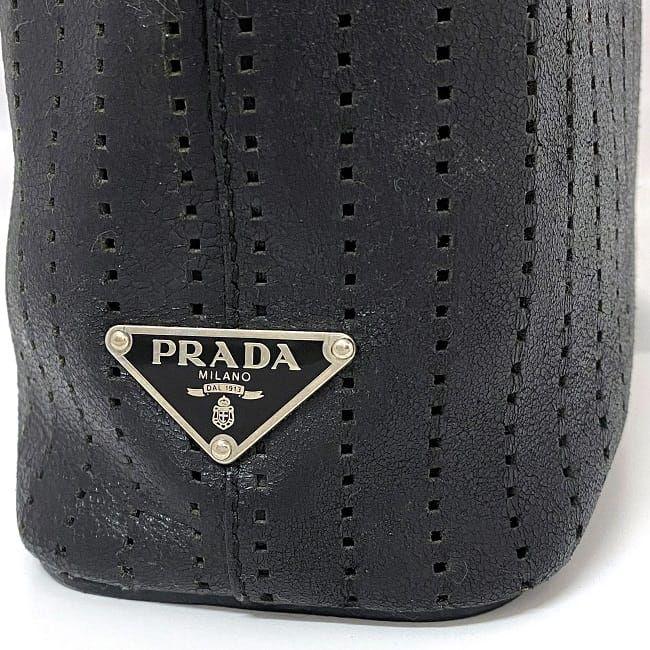 Prada tote bag black good condition perforated rare leather used PRADA vintage shoulder bag simple triangle logo plate classic popular women