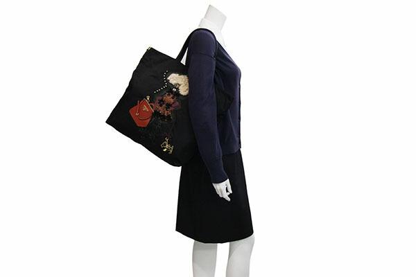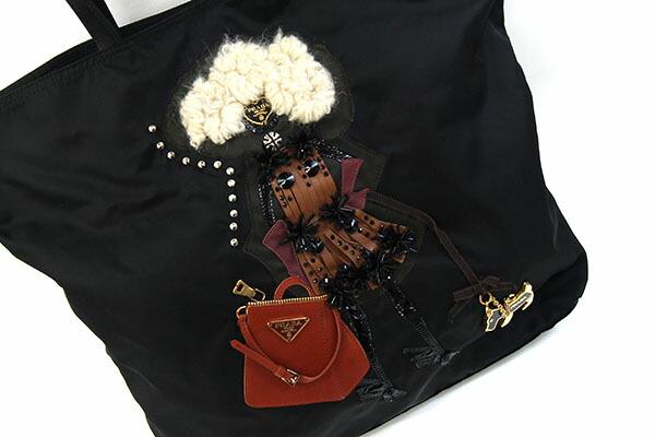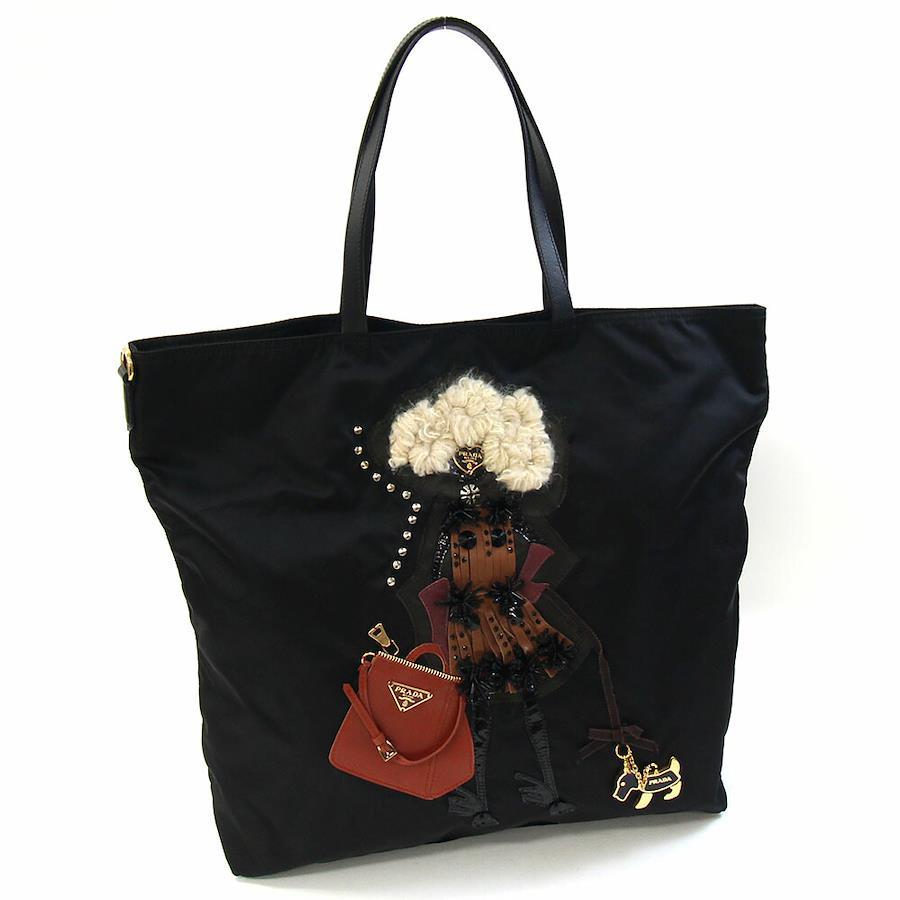 プラダトートバッグBR4439ブラックナイロンレザー中古肩掛けロボットロゴレディース女性PRADA
