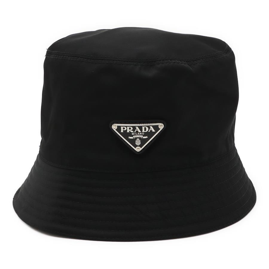 【コメント】大きなダメージ等なく、全体的に状態の良いお品物でございます。フロントにアイコニックなトライアングルロゴをあしらったバケットハット。合わせるコーディネートを選ばない汎用性の高さが魅力的なアイテムでございます。