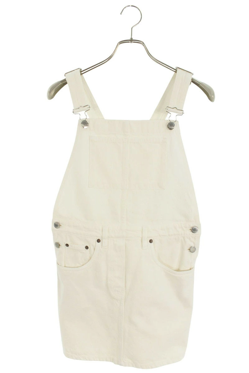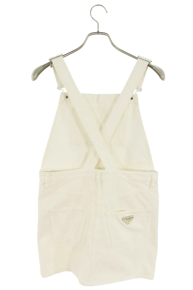PRADA Triangle Logo Plate Denim Skirt Overalls (Off White), Size 36, GFA139, Women's, Pre-owned, bb187#rinkan*A, 121152, BS99