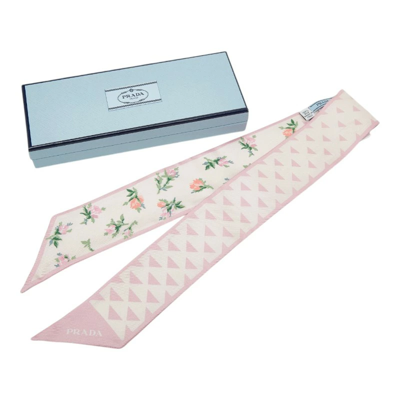- プラダ ツイリー フラワー モチーフ スカーフ 1FF008 ピンク マルチカラー シルク レディース PRADA 【中古】