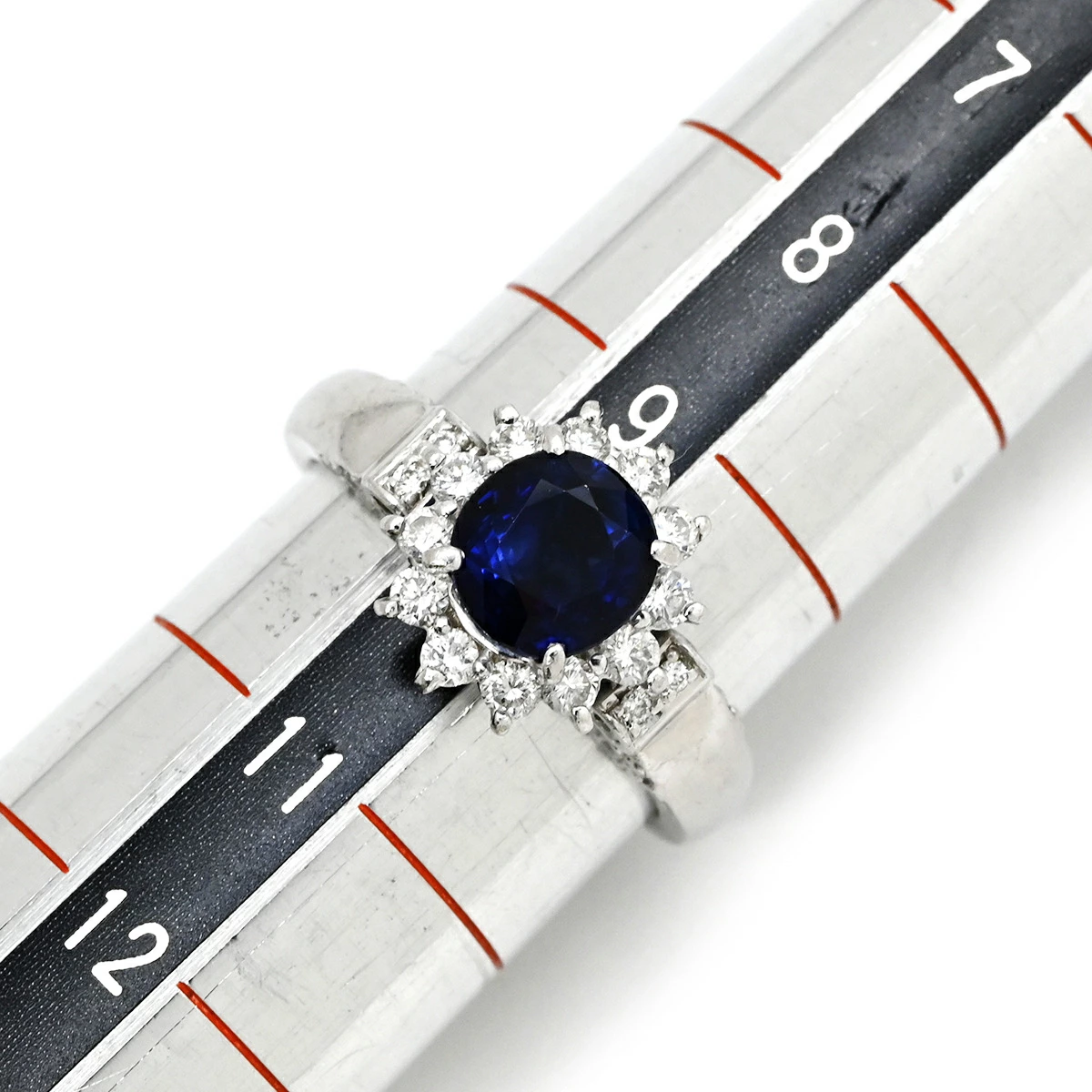 ノンブランド NON BRAND リング 指輪 ブルーサファイア ダイヤ Pt900 サファイア ダイヤモンド ブルー×プラチナシルバー 1.47ct オーバルカット Pt900 プラチナム 青 メレ フラワーモチーフ - 10号 レディース定番 人気 美品 【中古】
