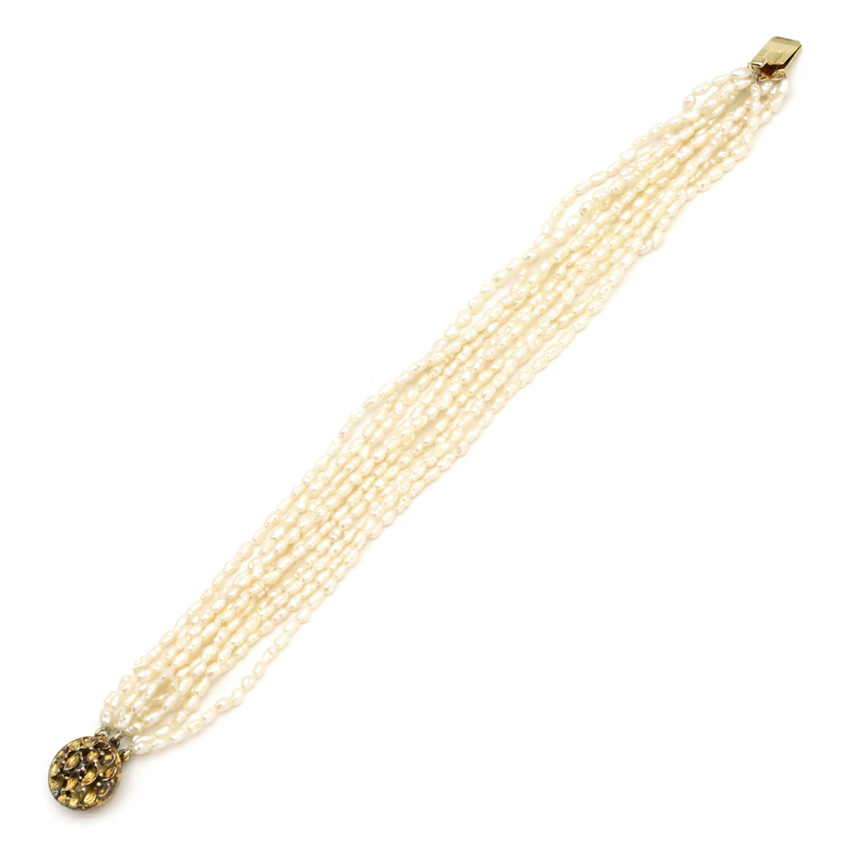 ノンブランド NON BRAND ブレスレット 淡水パール 10連 シルバー パール ゴールドXパールホワイト レディース定番 人気 美品 【中古】