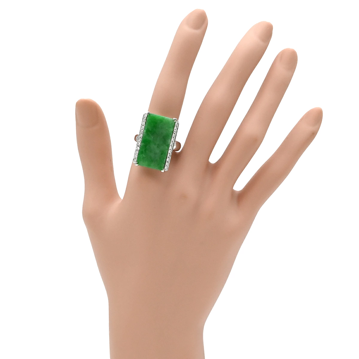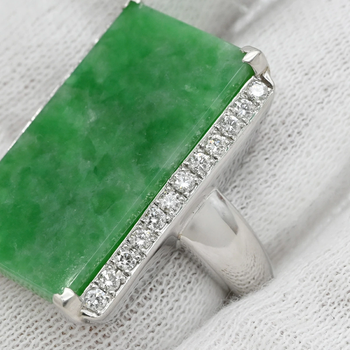 ノンブランド NON BRAND リング 指輪 ヒスイ 14.7ct ダイヤリング Pt900 ヒスイ ダイヤモンド プラチナシルバー 緑 グリーン 翡翠 ひすい ジェダイト ラージ 長角 プラチナ900 - 15号 レディース定番 人気 美品 【中古】