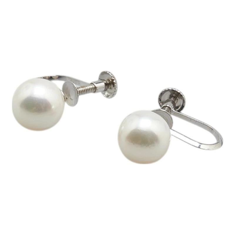 Pre-owned 14K White Gold Akoya Pearl Earrings for Women, 7.6-7.7mm