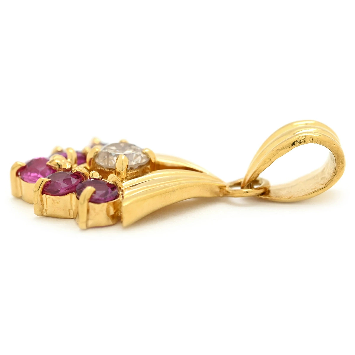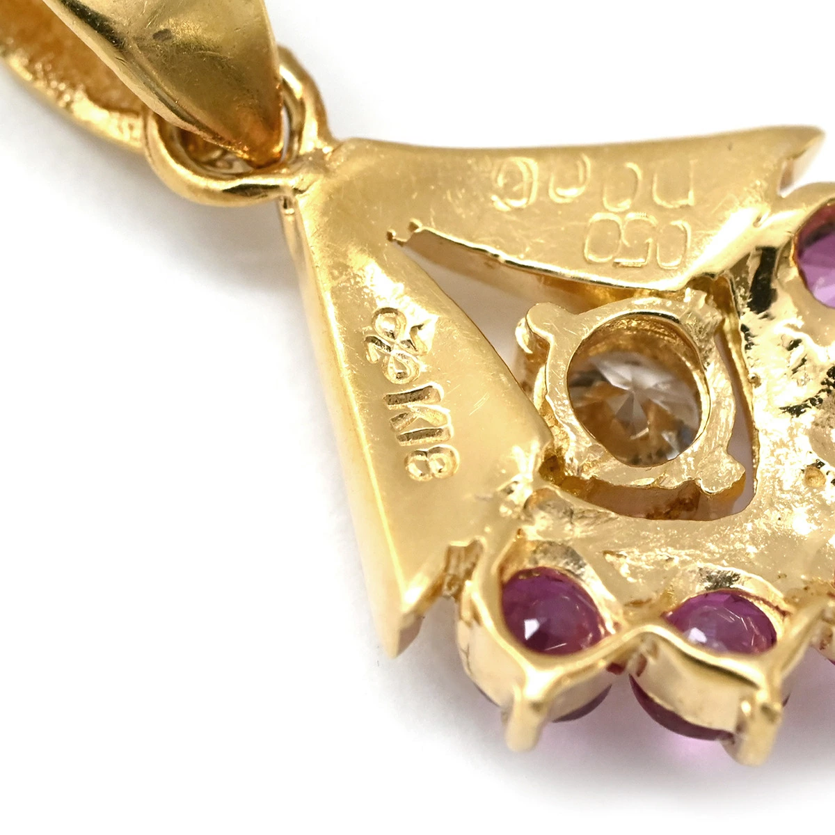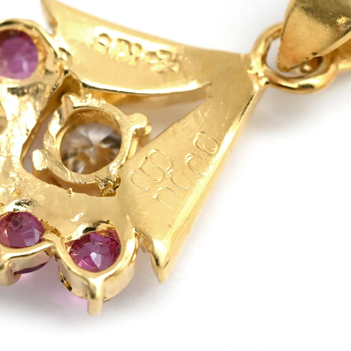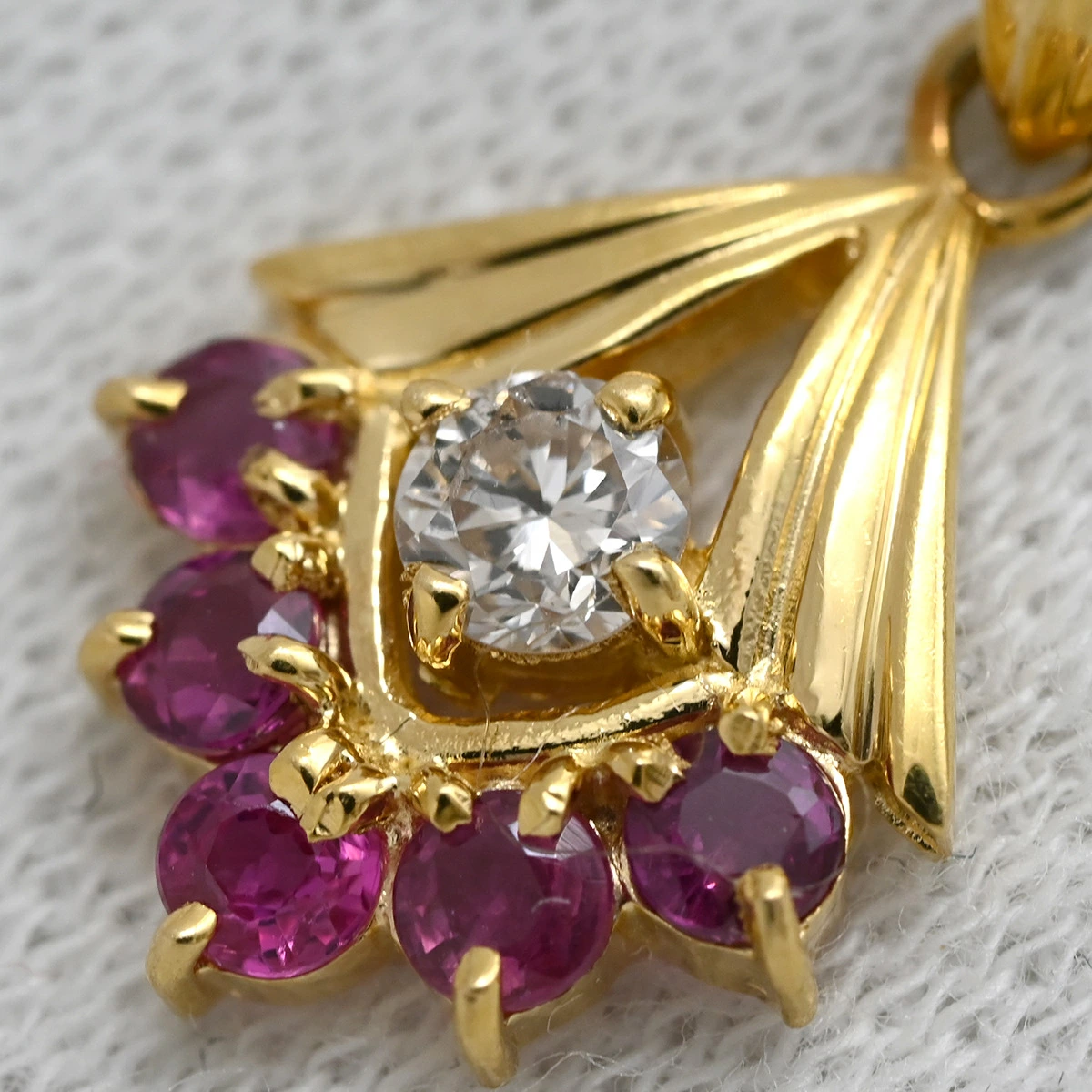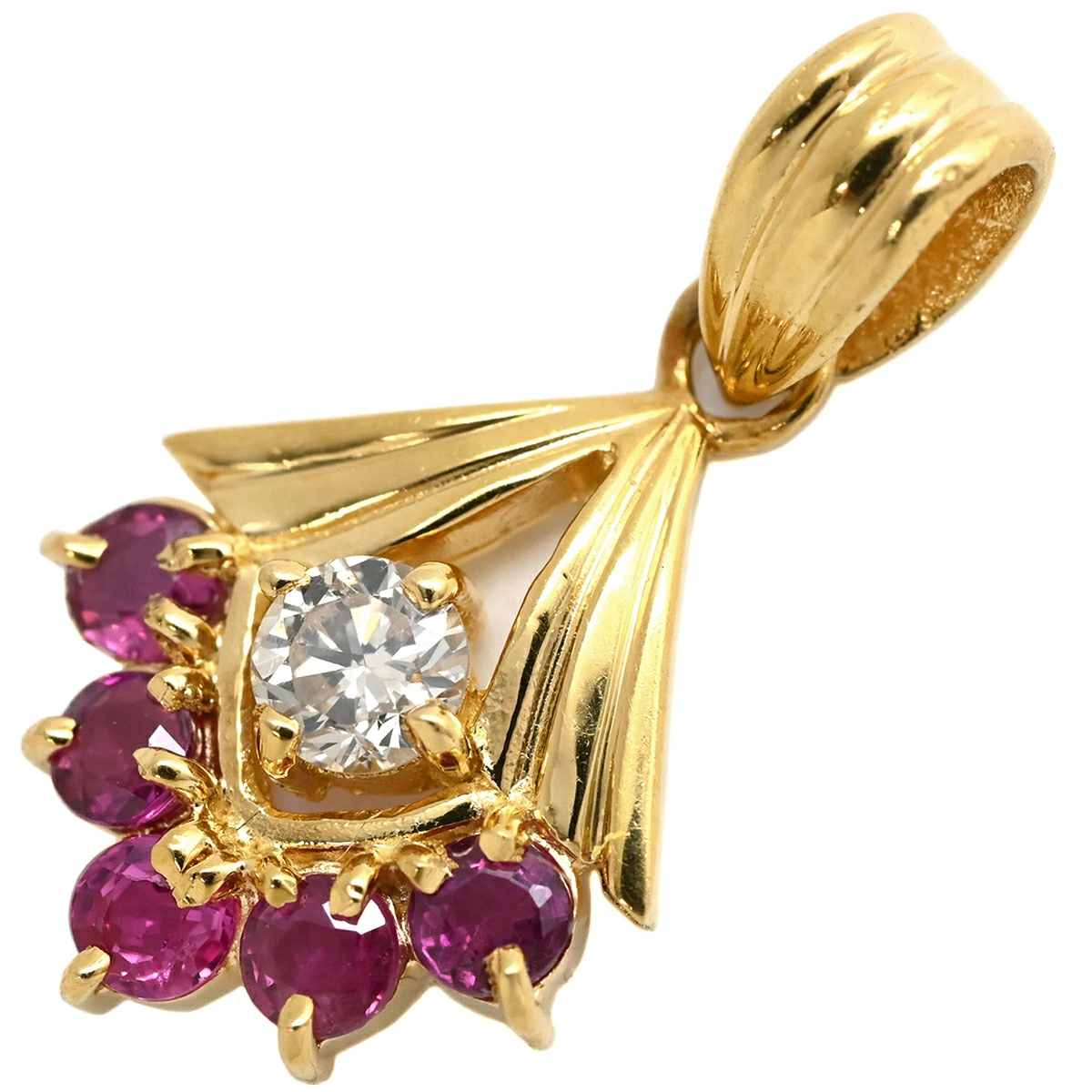 ノンブランド NON BRAND ペンダントトップ ルビー 0.50ct ダイヤモンド K18YG ルビー ダイヤモンド イエローゴールド リボン 赤 レッド ミックスカット チャーム ネックレストップ 18K 18金 750YG - レディース 【中古】