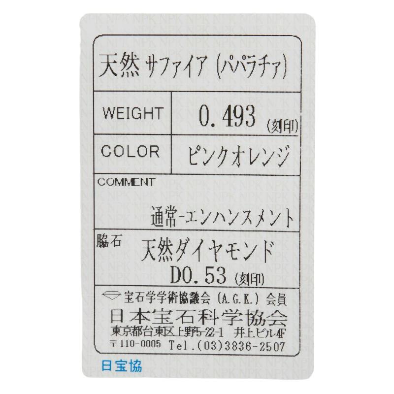 | 中石石目 | パパラチアサファイア0.493ct |