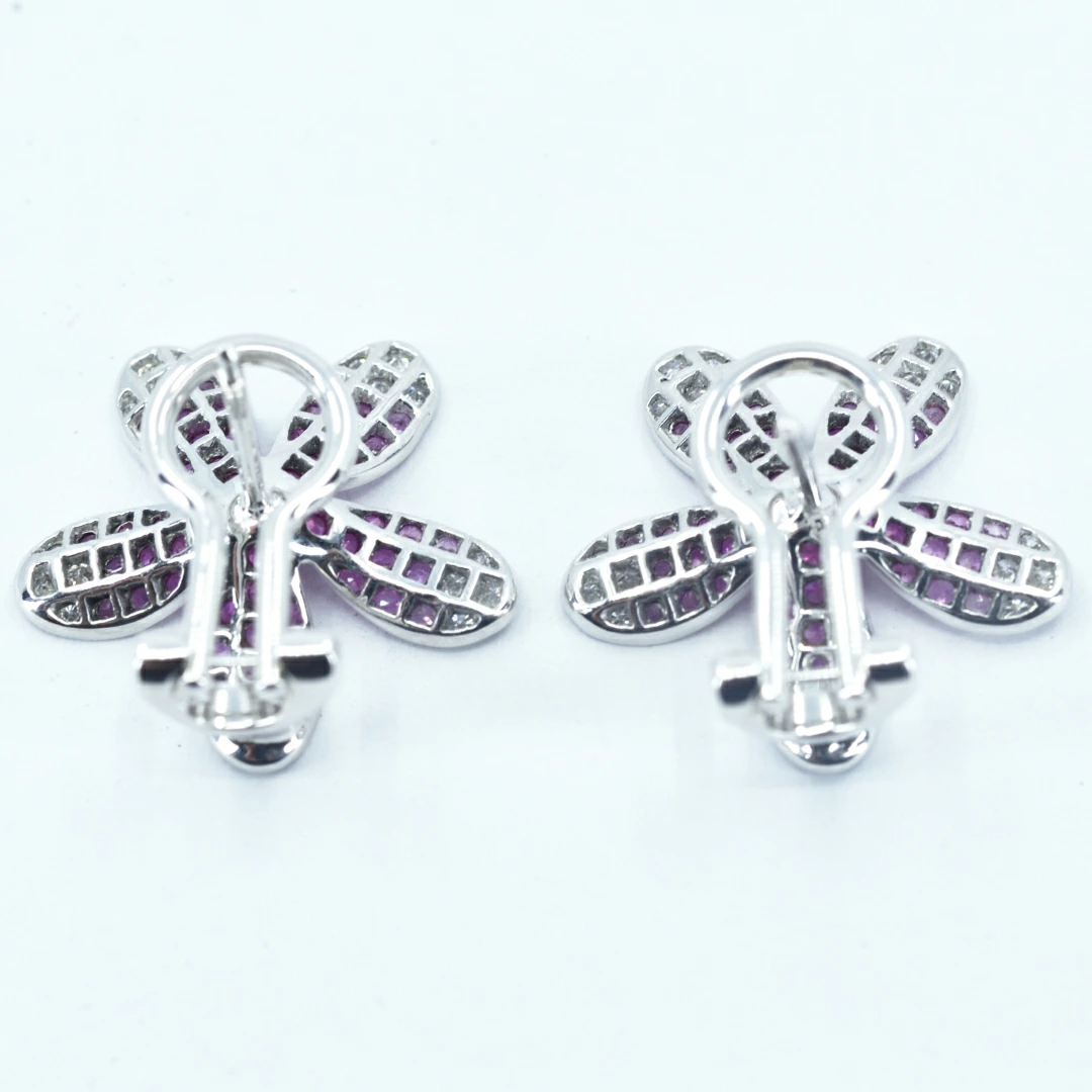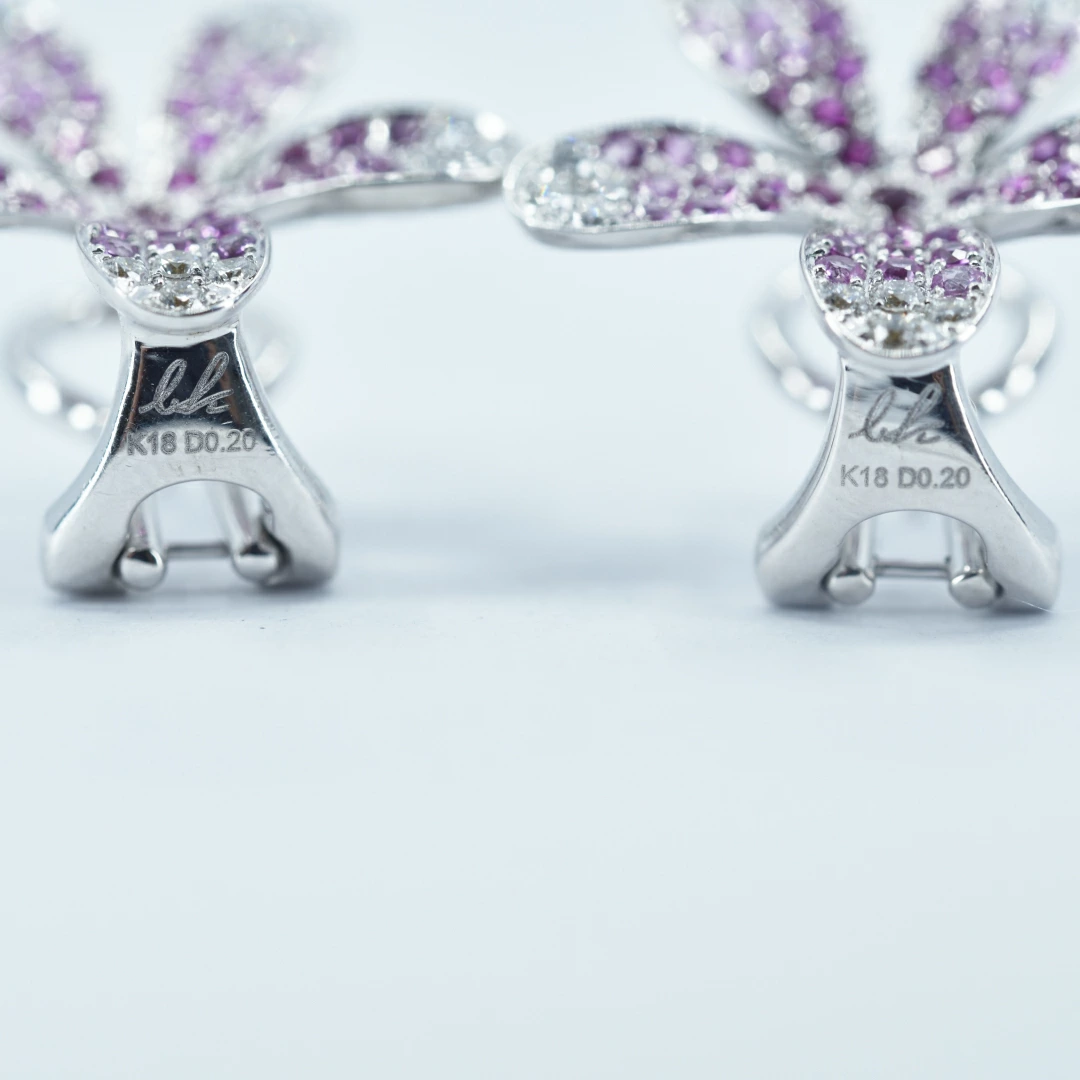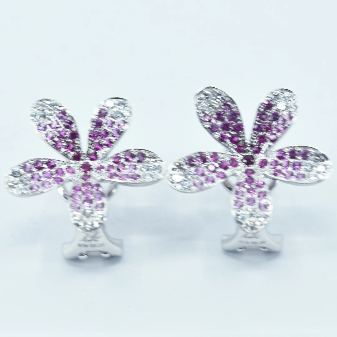 Pre-owned 18K White Gold Flower Motif Diamond Earrings in Silver/Pink. Women's Jewelry/Gemstones/Precious Metals/Earrings/Piercings/Ear Ornaments/Ear Accessories.