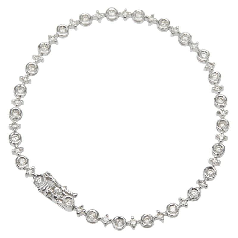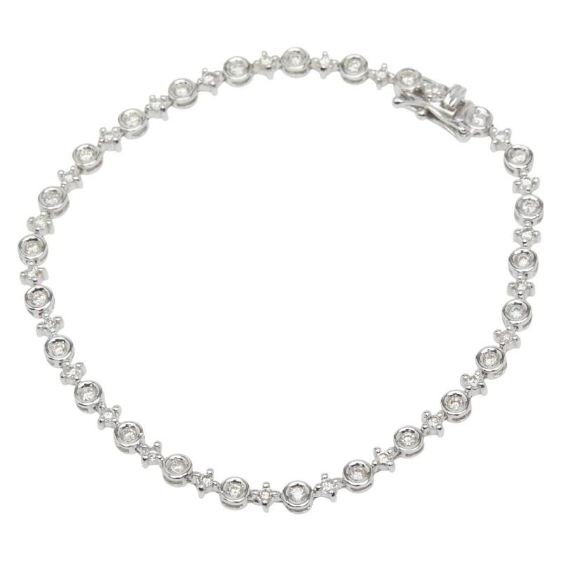 Pre-owned 18K White Gold Tennis Chain Bracelet for Women with 1.00ct Diamonds