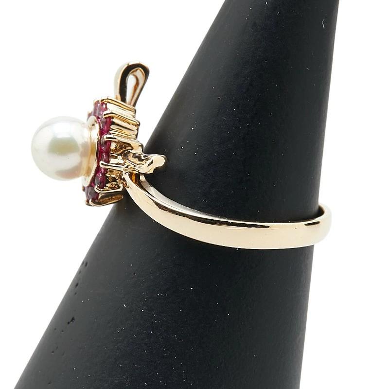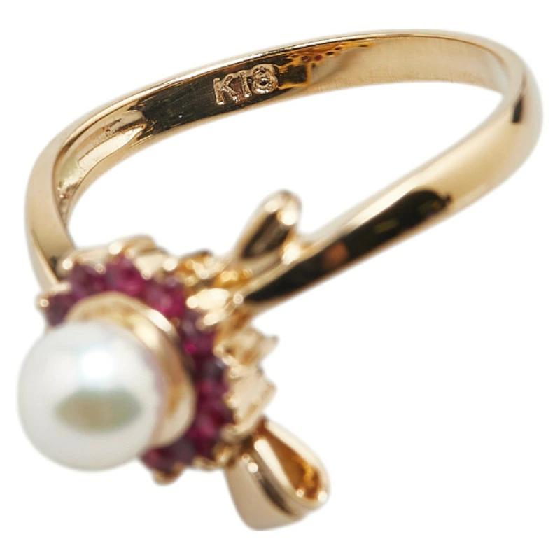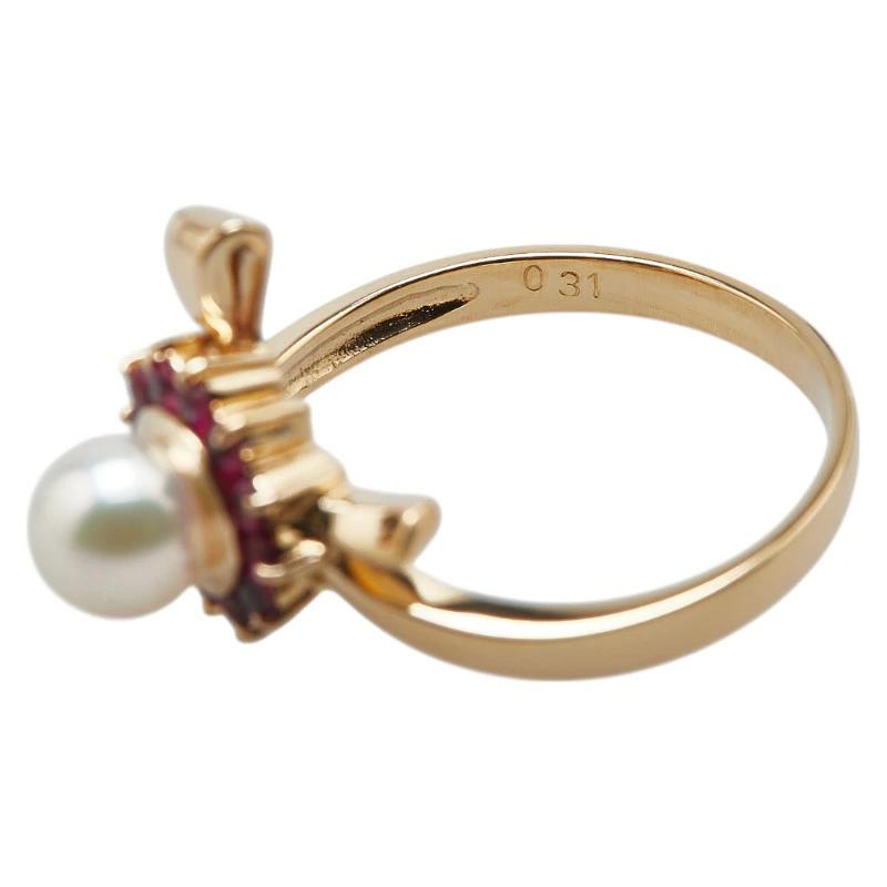 Pre-owned 18K Yellow Gold Akoya Pearl 5.3mm Ring with 0.31ct Ruby, Women's Size 11.5
