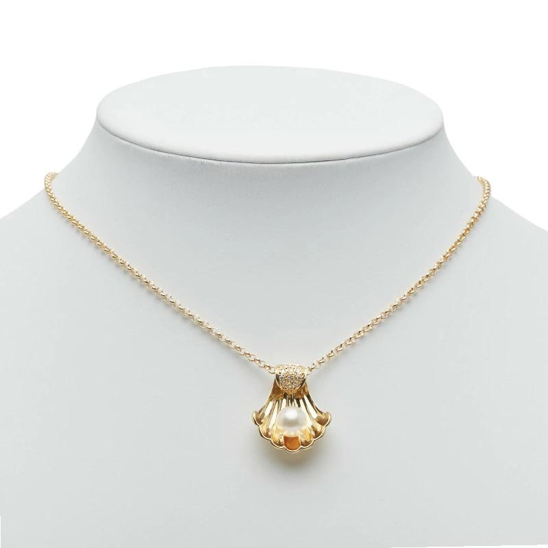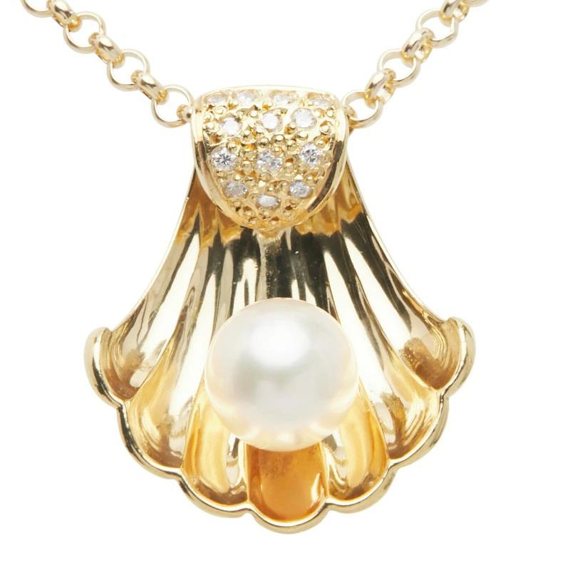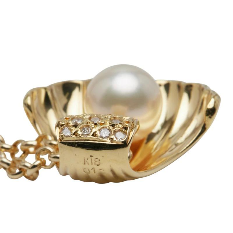 Pre-owned 18K Yellow Gold Akoya Pearl Pendant Necklace with 8mm Akoya Pearl and 0.13ct Diamonds.