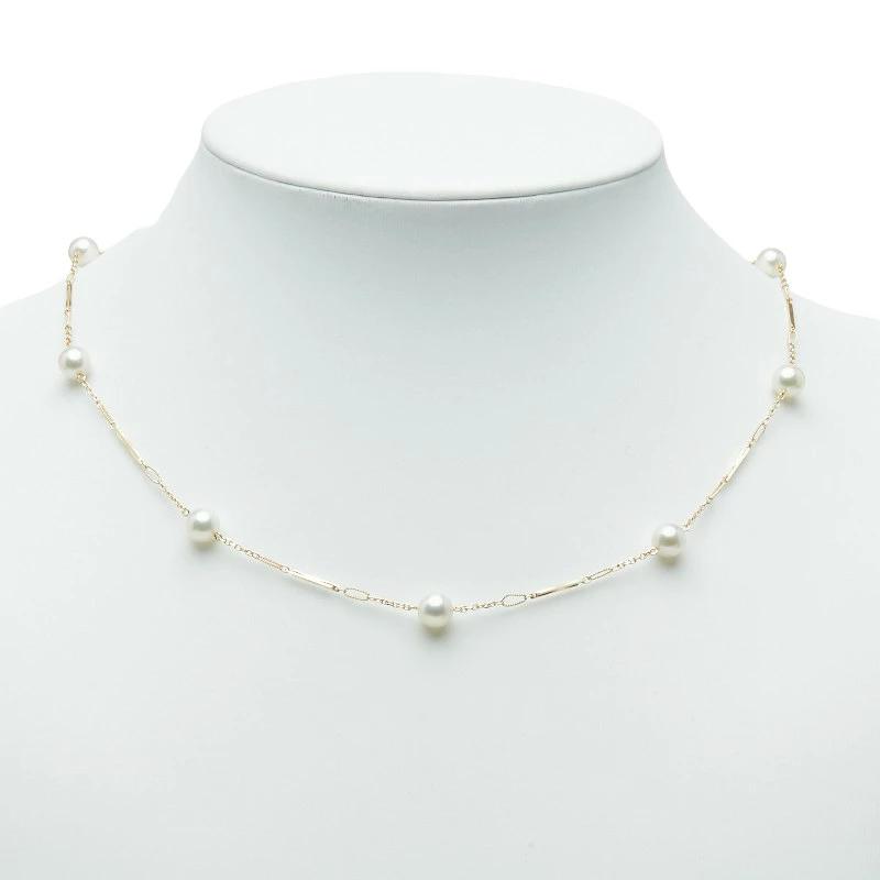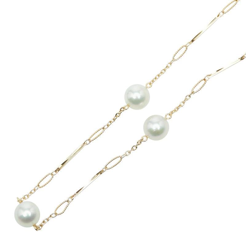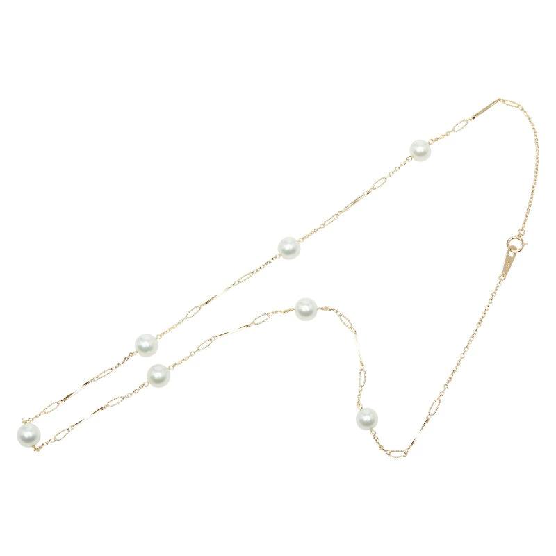 Pre-owned 18K Yellow Gold Akoya Pearl Station Necklace for Women (6.5-7mm)