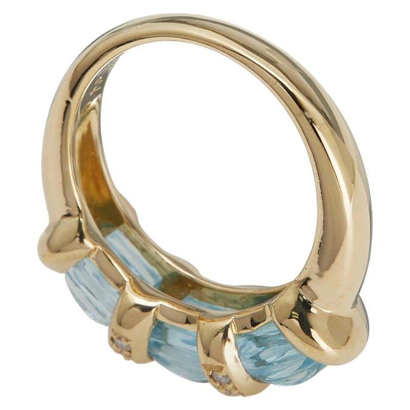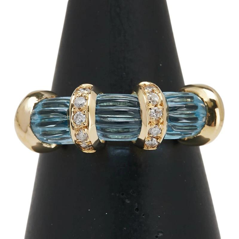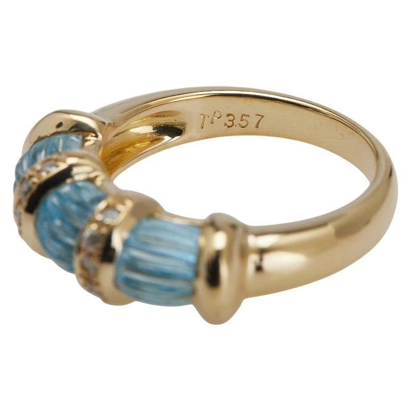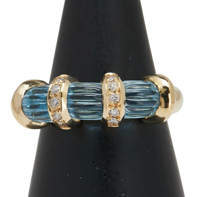 Pre-owned 18K Yellow Gold Ring with 3.57ct Blue Topaz and 0.12ct Diamonds, Size 11.5, Women's