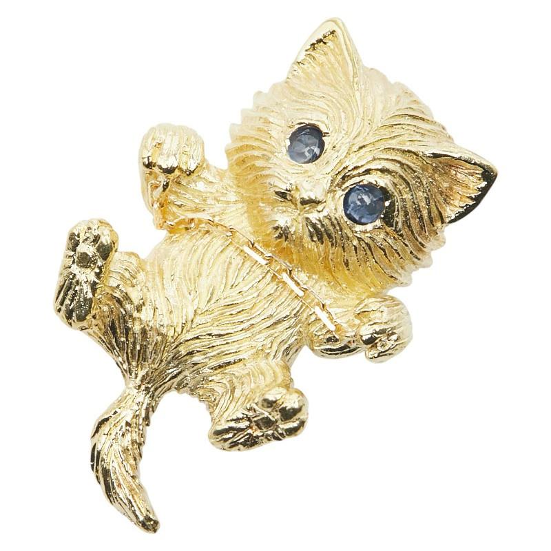 Pre-owned 18K Yellow Gold Sapphire Pendant Top by Tanaka Kikinzoku, featuring a cat motif.