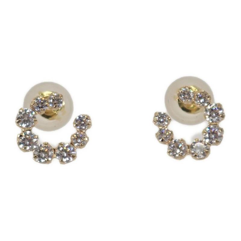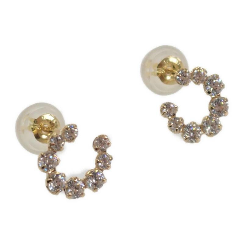 K18イエローゴールドの温かみのある輝きと、眩いスワロフスキージルコニアの煌めきが美しいデザインピアスです。