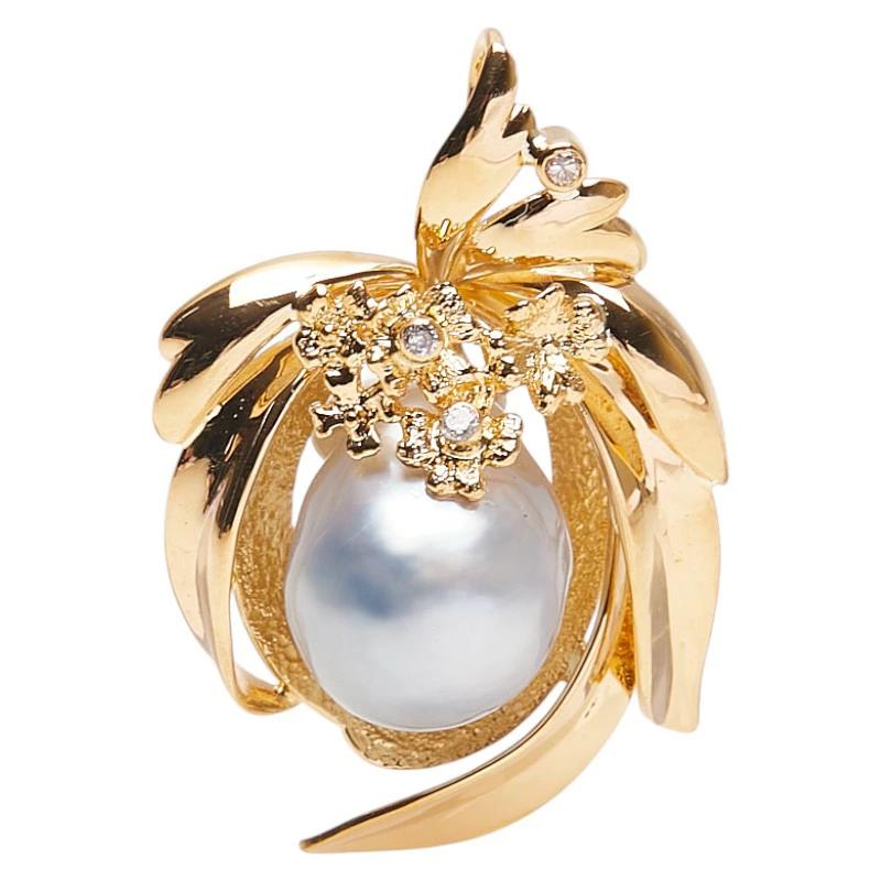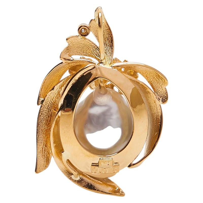Pre-owned 18K Yellow Gold White South Sea Pearl Pendant with 0.05ct Diamonds, Approx. 11.6mm, for Women