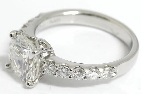 | コメント | トップに2ctオーバーの大きい一粒ダイヤモンドと、その両サイドのリングに5Pずつ計10Pの小粒ダイヤモンドがレイアウトされ、真上から見える範囲内ではすべてがダイヤモンドという豪勢なリングです。横から見てもダイヤモンドが厚く、贅沢の一言に尽きます。 |