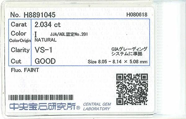 | 石目 | 2.034/0.511刻印 (ダイヤモンド1石 2.034ct×ダイヤモンド計10石 0.511ct) |