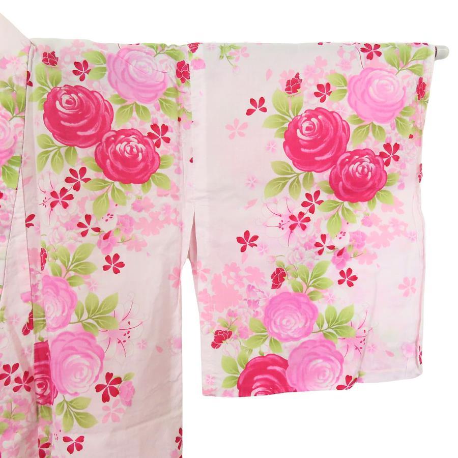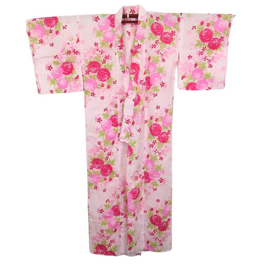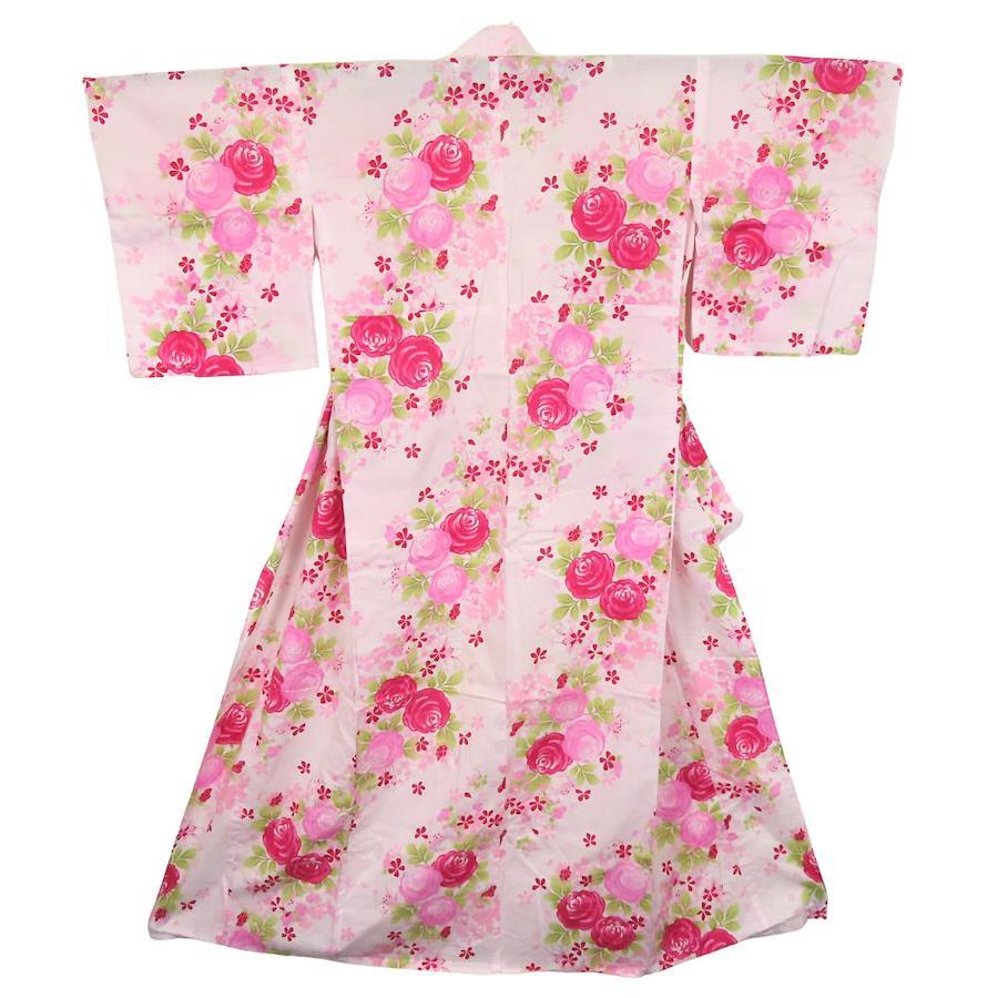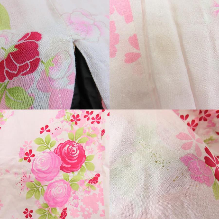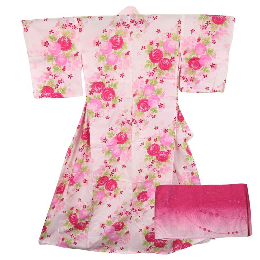 | 品名 | 【中古】 浴衣 2点セット 小袋帯 綿 ポリエステル ピンク系 薔薇 リボン 可愛い レディース 女性 |