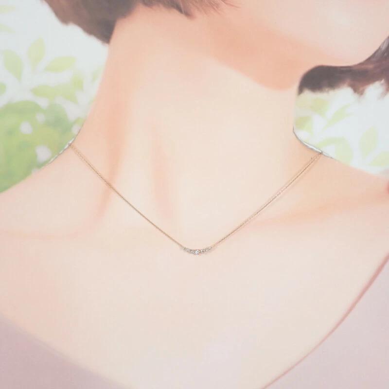 7粒のダイヤモンドがエレガントに連なり、柔らかな輝きを放つネックレス。