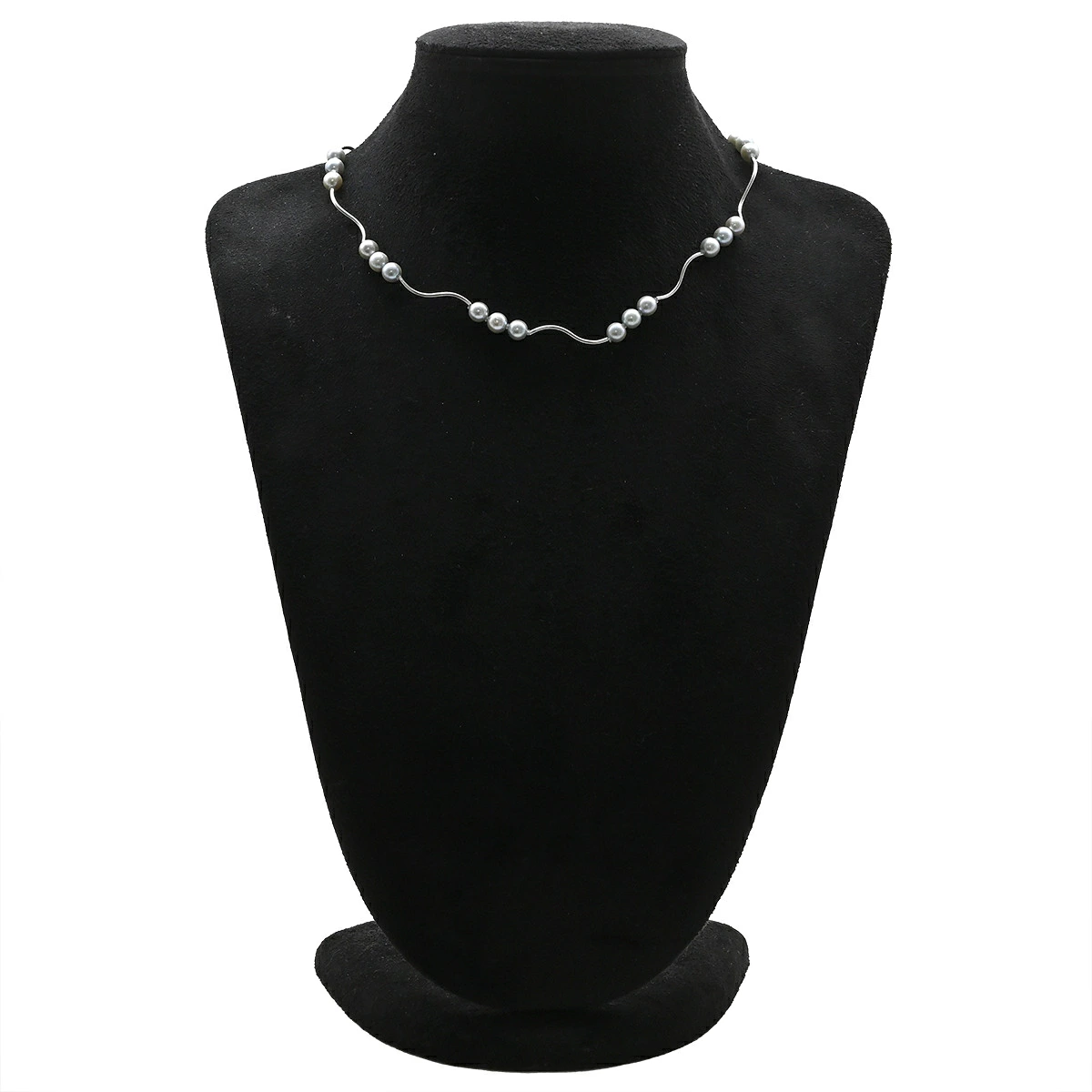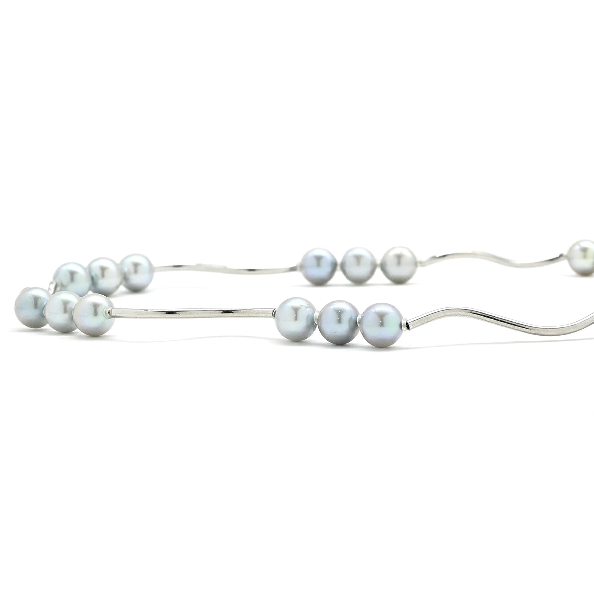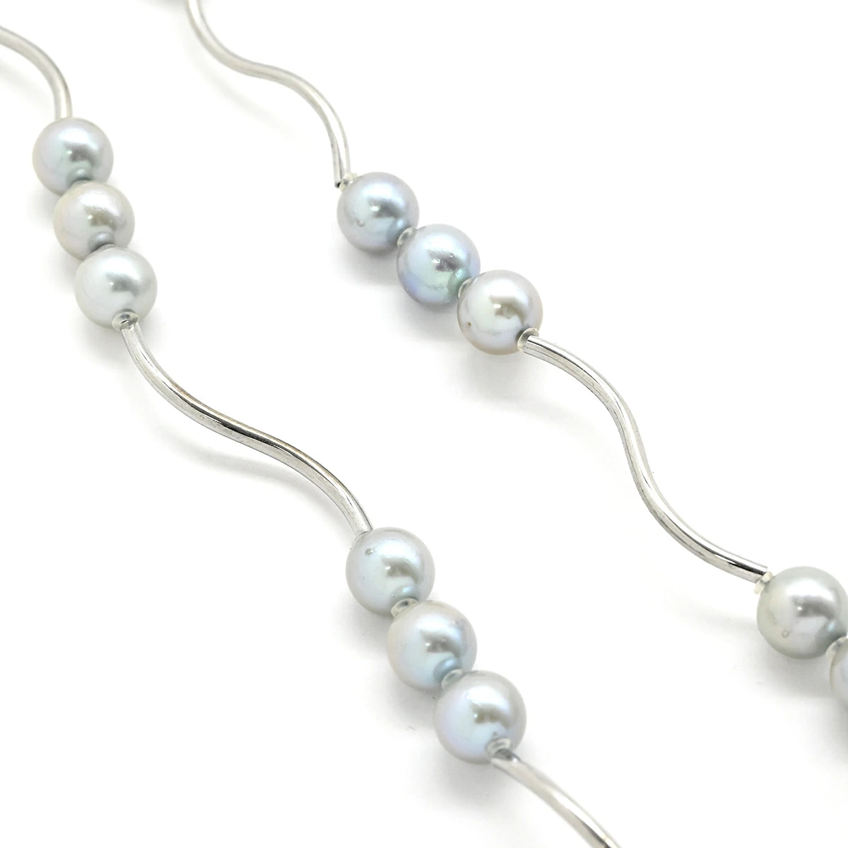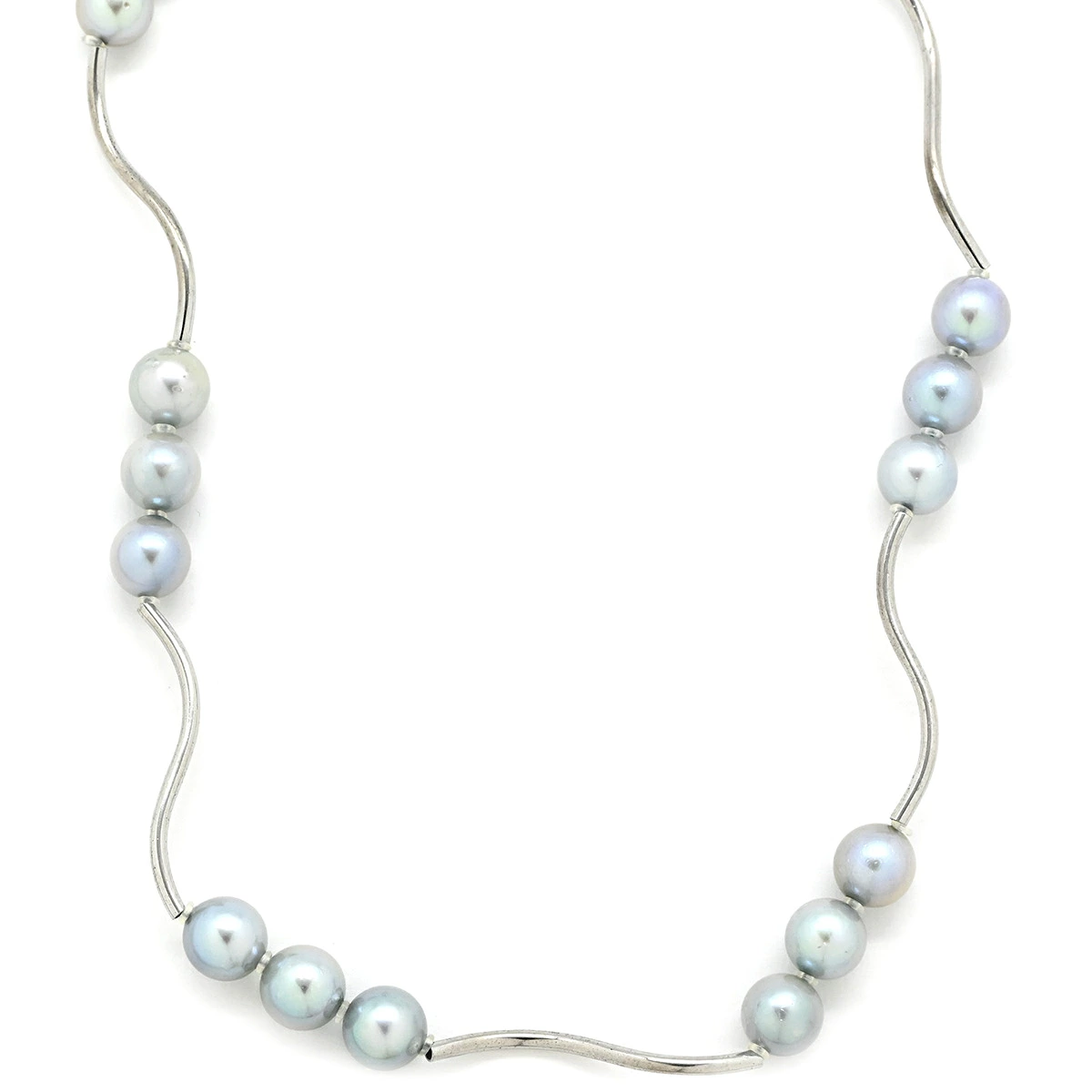 ノンブランド NON BRAND ネックレス 7mm パール ペンダント パール シルバー グレー×シルバー 真珠 アコヤ あこや シルバーグレイ 灰色 波型 パールステーション プリンセスサイズ 43.5cm - レディース定番 人気 美品 【中古】