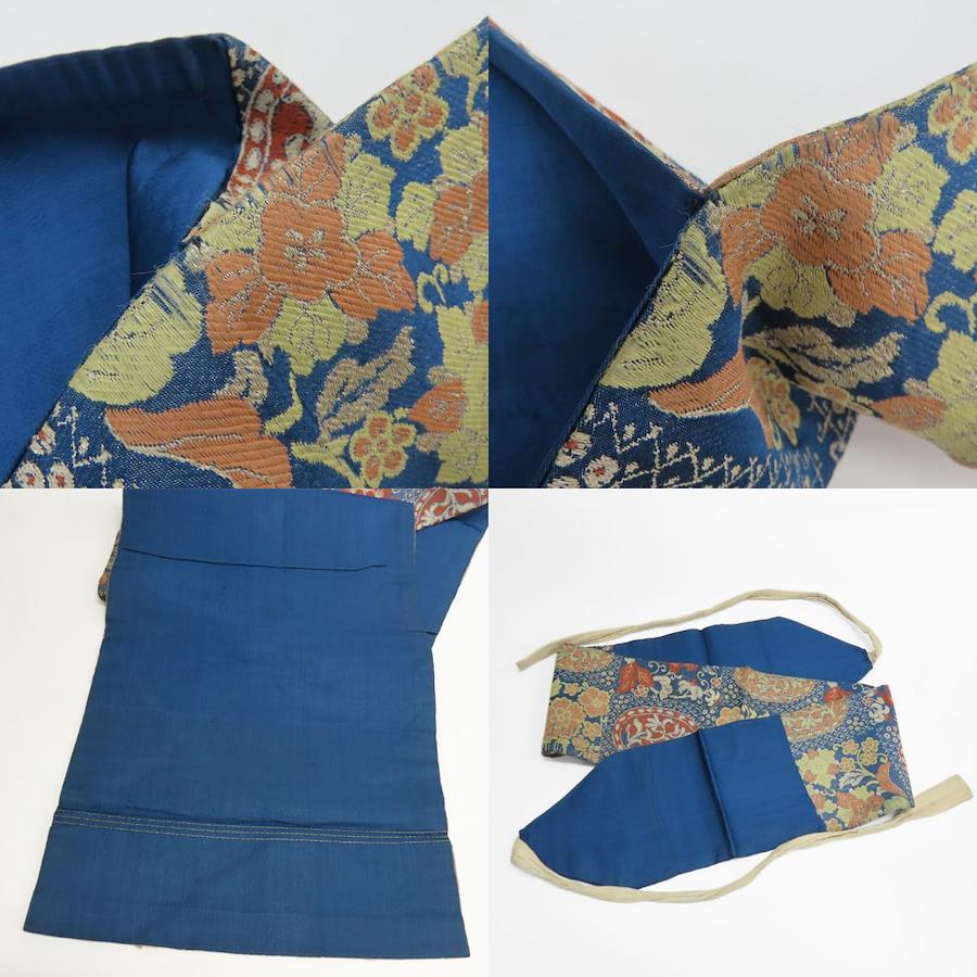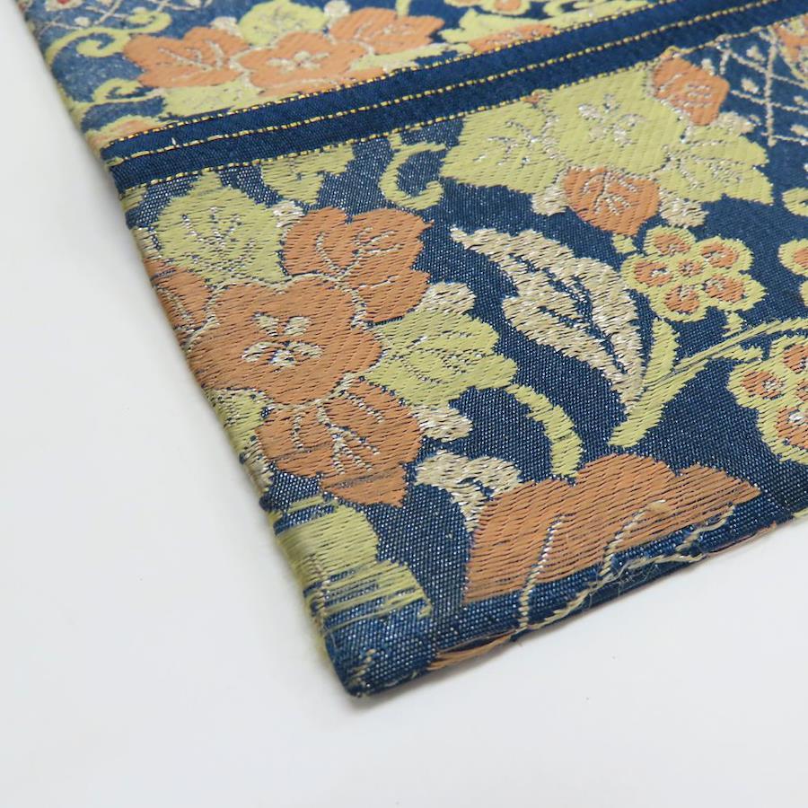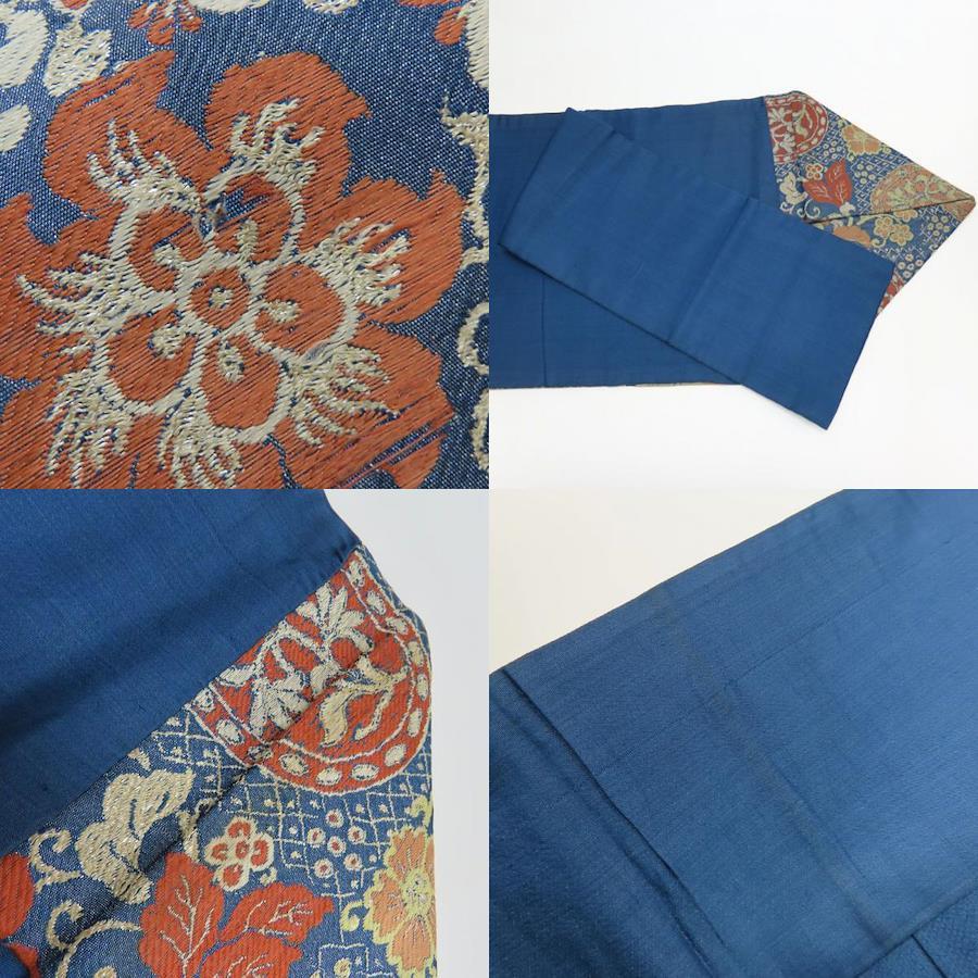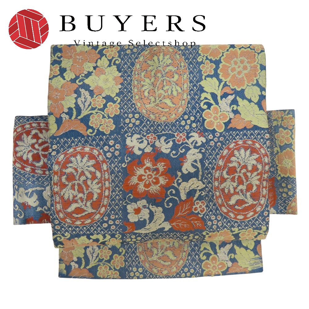| 品名 | 【中古】 帯 九寸 正絹(金銀糸除く) ブルー系 マルチカラー 二部式 唐花 レディース 女性 |