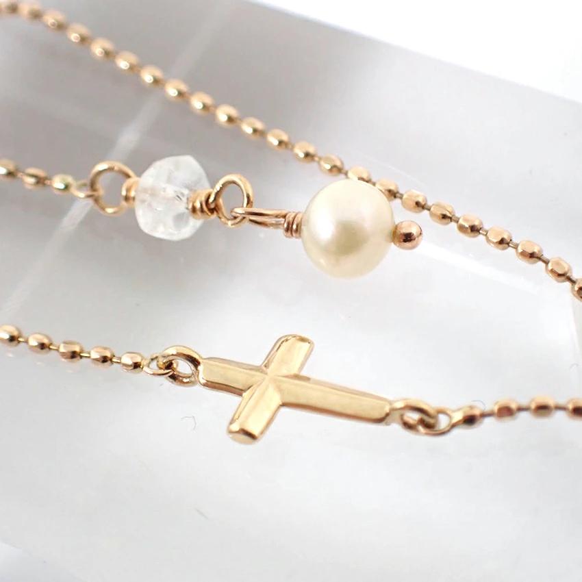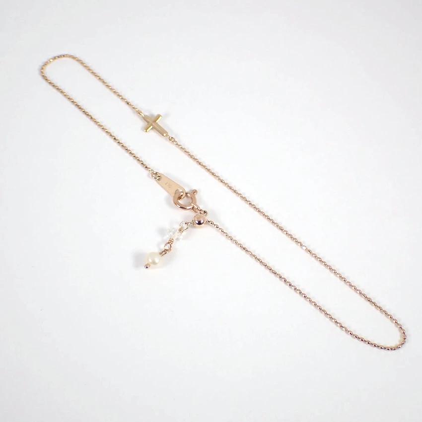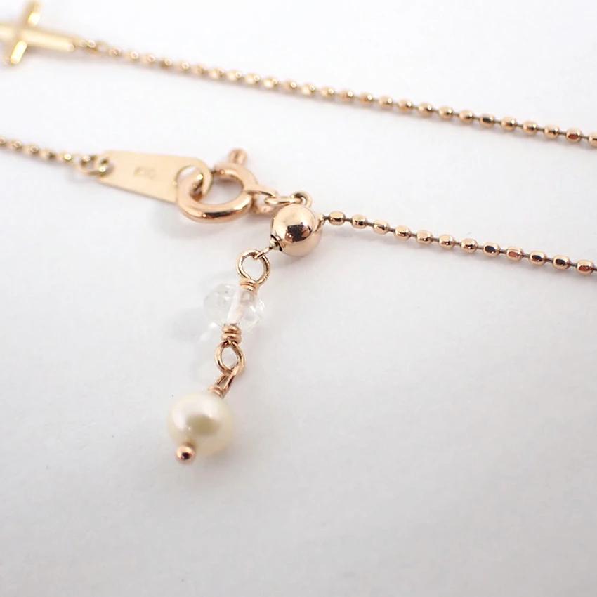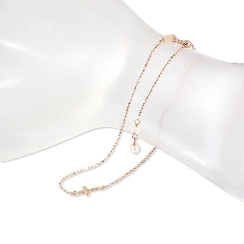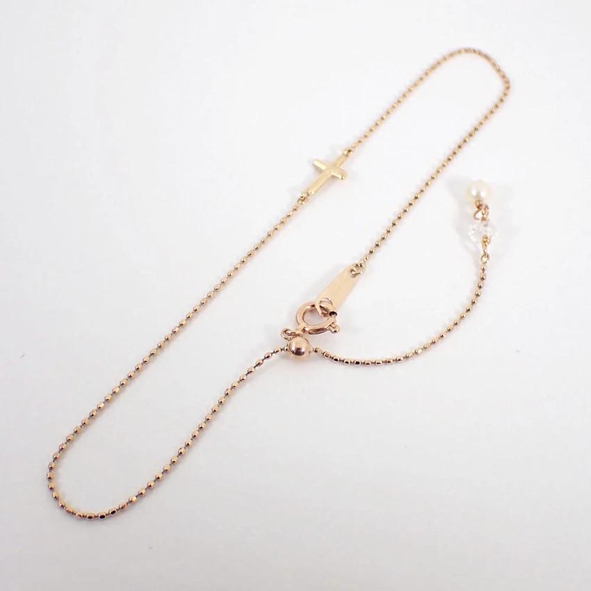 Product DetailsProduct Rank: Rank AMaterial: 10K Pink GoldWeight: Approx. 0.9gTotal Length: Approx. 22cmNatural Stones: Pearl, CrystalFree ChainProduct Detailsagete Bracelet/AnkletThis delicate bracelet features a delicate design accented with crosses and pearls. At 22cm in length, it can also be used as an anklet.Brand new and polished.Product Rank: [N] New or equivalent, in excellent condition with no defects. [S] Almost flawless and in good condition. [A] Lightly used. [B] Signs of use. [C] Very heavy wear, obvious damage, or in need of repair. ____________________________Condition: Used
