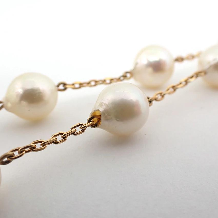 This high-quality Akoya pearl necklace features a beautiful white and pink luster and uniform pearls.