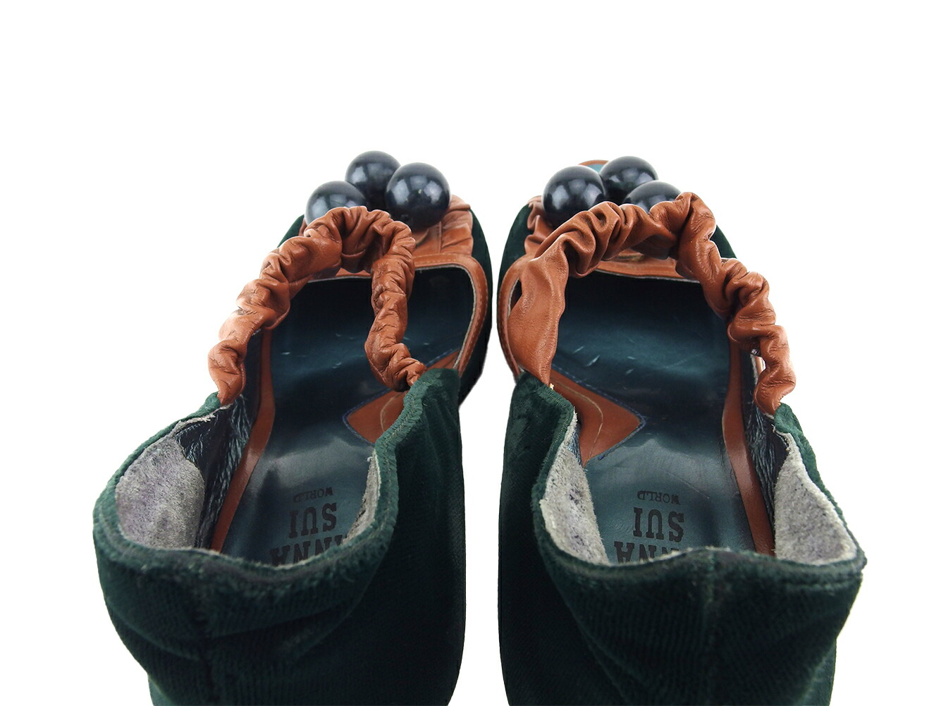 Pre-owned ANNA SUI Ball Jewel Pumps #3 Half Size Green Brown Black Women's
