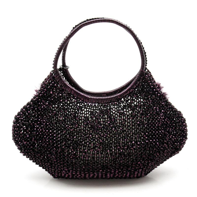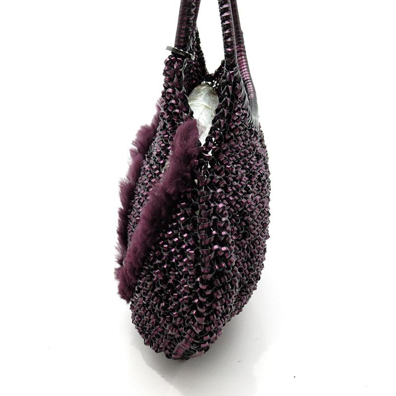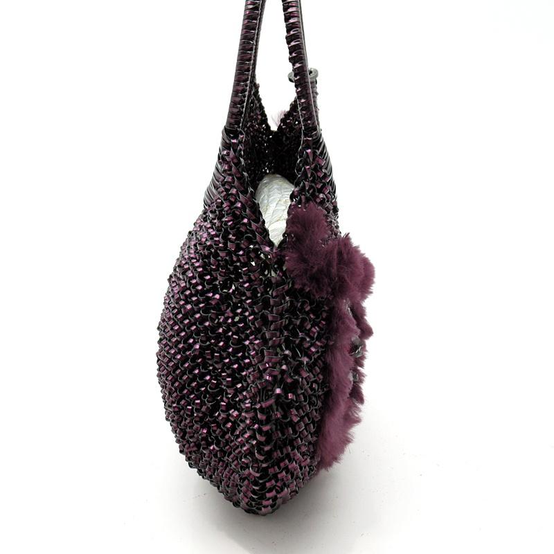 Pre-owned Anteprima rhinestone handbag with wire and fur, purple, excellent condition