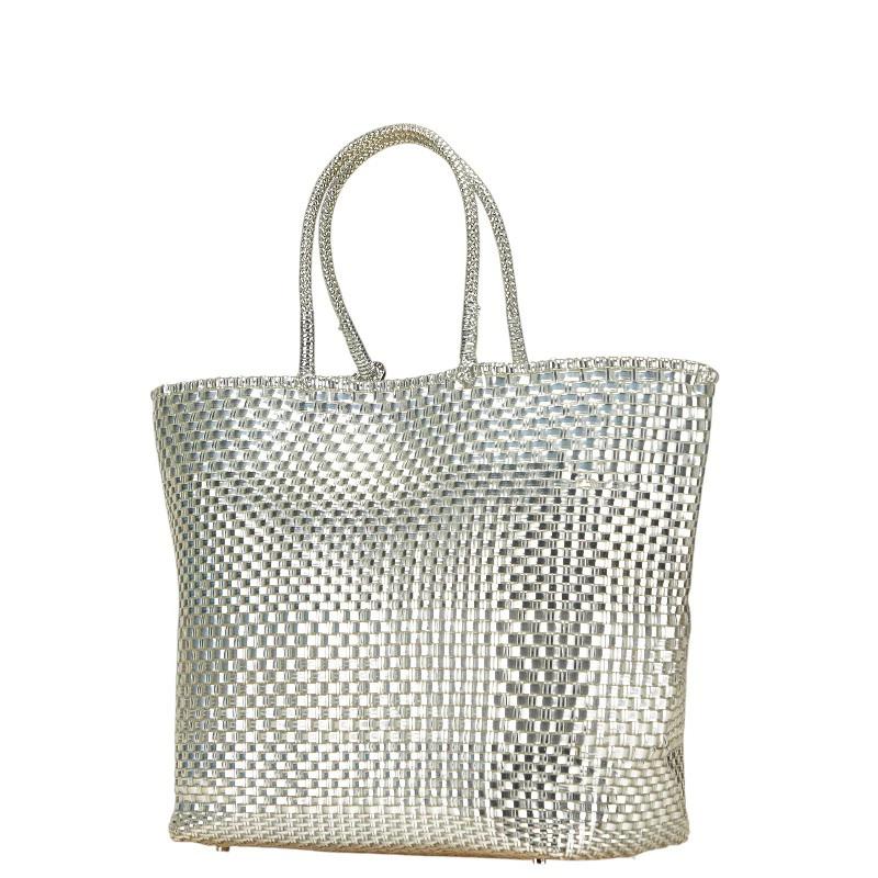 Pre-owned ANTEPRIMA wire bag, tote bag, and handbag in silver vinyl for women.
