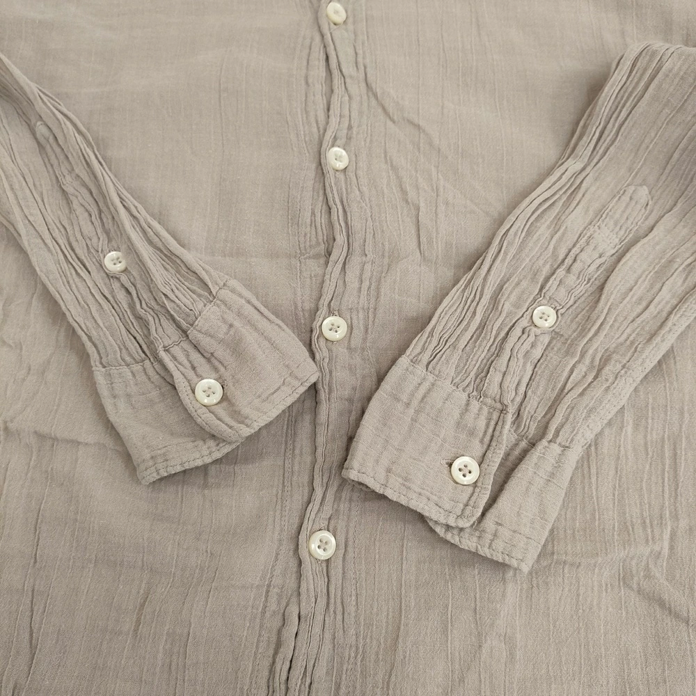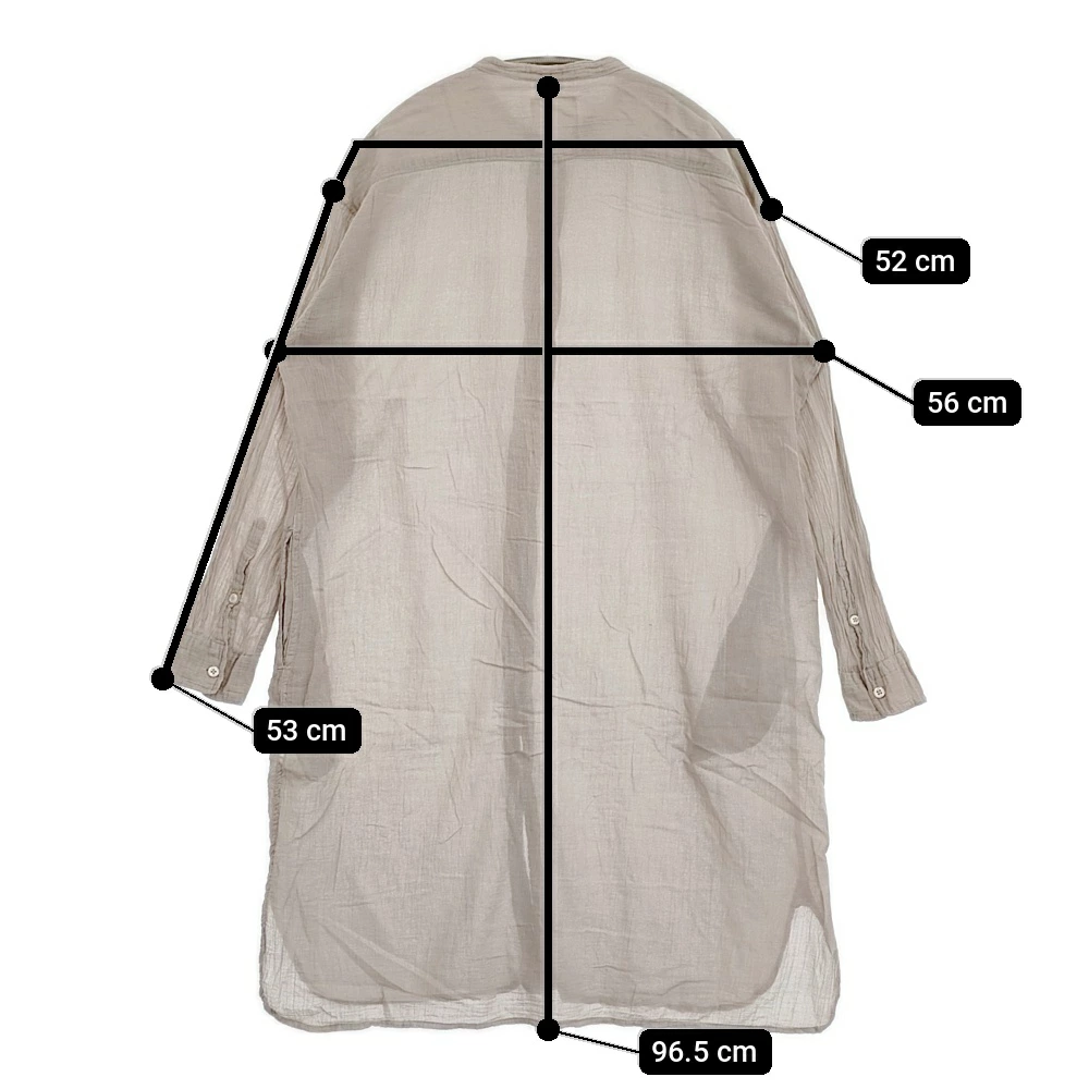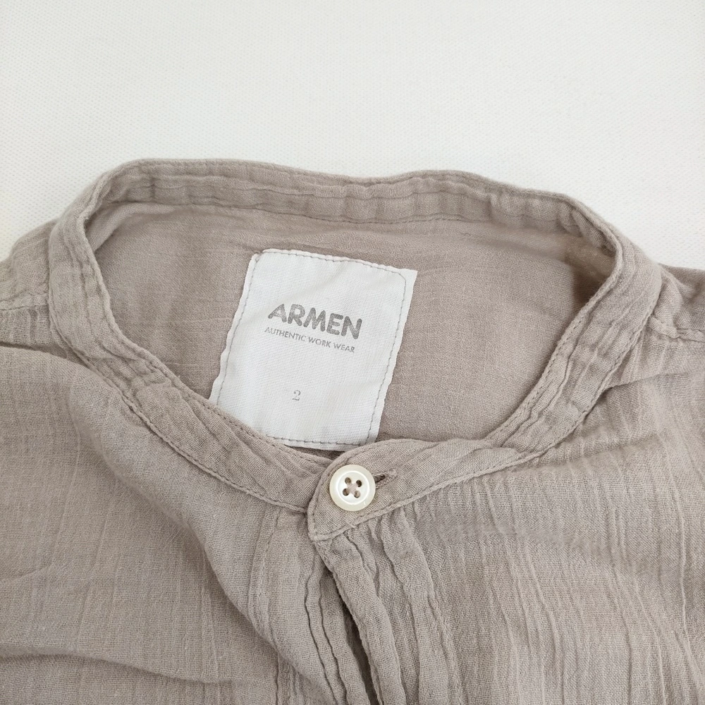 Pre-owned ARMEN Women's Band Collar Long Shirt, Gauze, Size 2, Made in India, Greige, Long Sleeve, Item Number 5-1103M