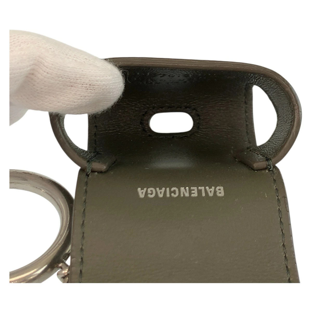 Pre-owned BALENCIAGA Cash AirPods Case in Gray, Brown, and Silver Hardware with Leather (Product Code: 655679 3590). Unisex. Men's. Product Code: 506217.