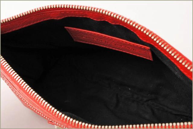 セレブやモデルにも大人気のバレンシアガ・クラッチバッグです。大きめのスタッズが特徴的。大変手触りの良い柔らかなレザーで、高級感があります。パーティシーンやイブニングバッグなどに、オススメです。小さめのタブレットケースやバッグインバッグとしても使える丁度良い大きさで長財布や手帳、小物などが収納可能。サイドにはロゴの刻印が入ったキーリングが施され、バッグチャームや鍵を付けたりできます。