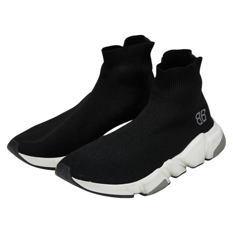 Pre-owned Balenciaga Speed Trainer Sneakers, Size 40, Black and White Rubber Fabric, Men's.